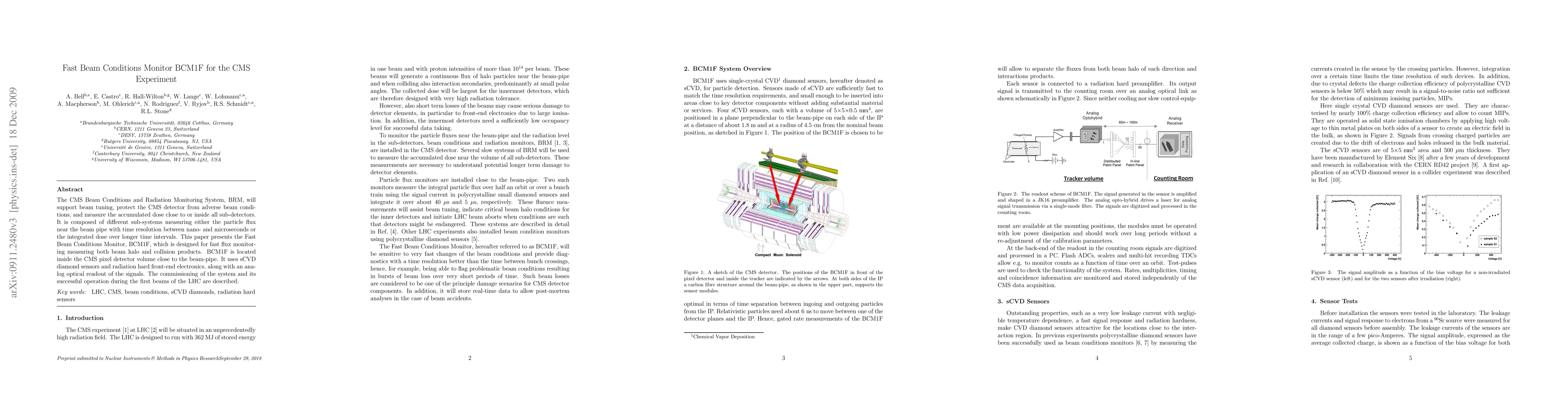 The paper introduces the Fast Beam Conditions Monitor BCM1F for the CMS experiment, designed for rapid monitoring of beam flux and integrated dose, utilizing sCVD diamond sensors and front-end electronics. The system successfully operated during the first LHC beams, supporting beam tuning and detector protection.