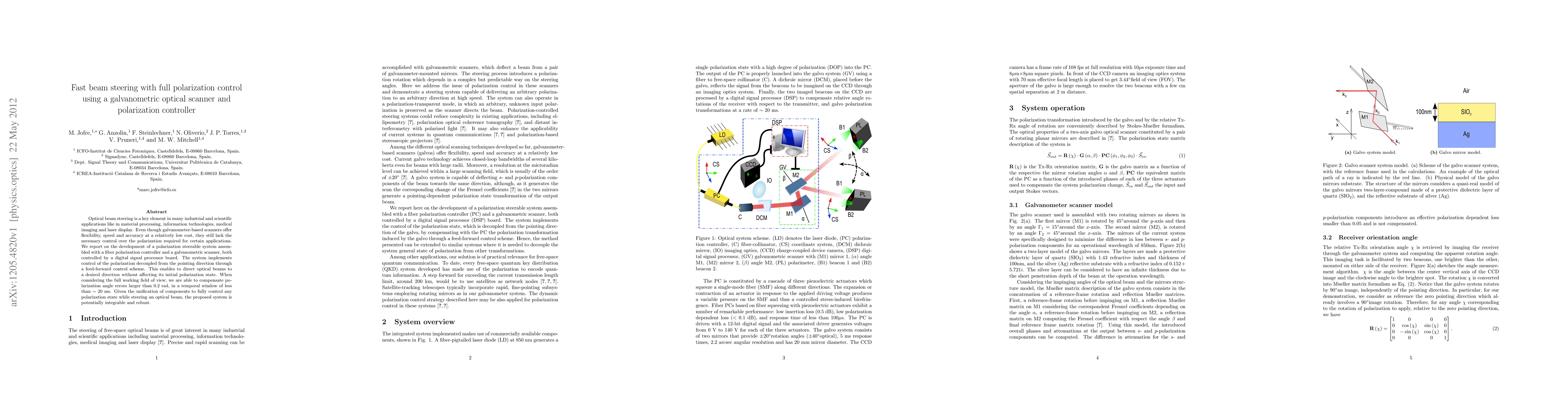 This paper presents a novel system combining a galvanometric optical scanner and a fiber polarization controller to achieve fast beam steering with full polarization control, enabling applications in material processing, medical imaging, and laser displays. The system uses a feed-forward control scheme to decouple polarization control from beam direction, achieving error compensation within 0.2 rad in under 20 ms.