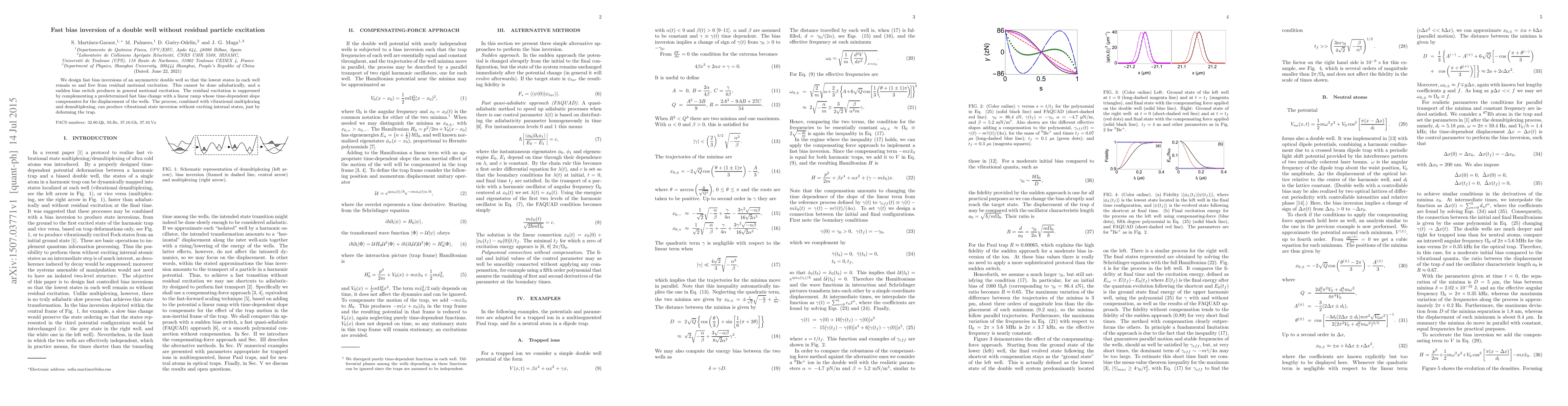 This paper presents a method for fast bias inversion in an asymmetric double well system that suppresses residual particle excitation by using a linear ramp to compensate for well displacement, enabling vibrational state inversion without internal state excitation. The technique combines this with vibrational multiplexing and demultiplexing for efficient control.