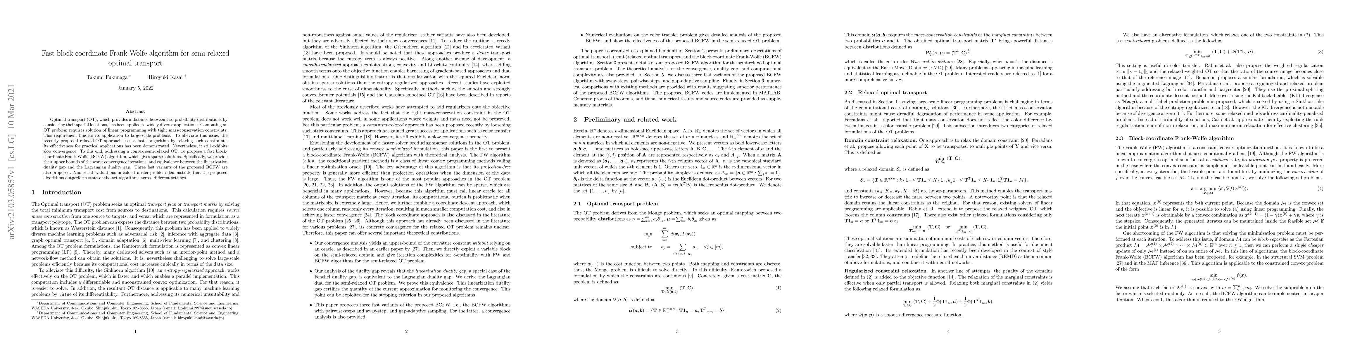 This paper proposes a fast block-coordinate Frank-Wolfe algorithm for semi-relaxed optimal transport, improving convergence rates in large-scale applications.