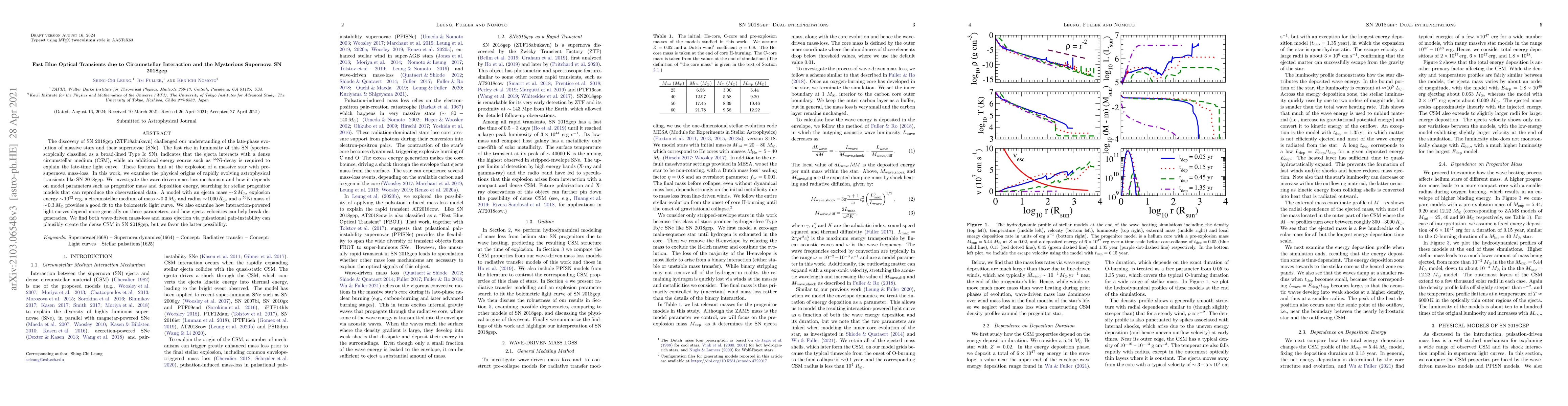 The discovery of SN 2018gep (ZTF18abukavn) challenged our understanding of the late-phase evolution of massive stars and their supernovae (SNe). The fast rise in luminosity of this SN (spectroscopically classified as a broad-lined Type Ic SN), indicates that the ejecta interacts with a dense circumstellar medium (CSM), while an additional energy source such as $^{56}$Ni-decay is required to explain the late-time light curve. These features hint at the explosion of a massive star with pre-supernova mass-loss. In this work, we examine the physical origins of rapidly evolving astrophysical transients like SN 2018gep. We investigate the wave-driven mass-loss mechanism and how it depends on model parameters such as progenitor mass and deposition energy, searching for stellar progenitor models that can reproduce the observational data. A model with an ejecta mass $\sim \! 2 \, M_{\odot}$, explosion energy $\sim \! 10^{52}$ erg, a circumstellar medium of mass $\sim \! 0.3 \, M_{\odot}$ and radius $\sim \! 1000 \, R_{\odot}$, and a $^{56}$Ni mass of $\sim \! 0.3 \, M_{\odot}$ provides a good fit to the bolometric light curve. We also examine how interaction-powered light curves depend more generally on these parameters, and how ejecta velocities can help break degeneracies. We find both wave-driven mass-loss and mass ejection via pulsational pair-instability can plausibly create the dense CSM in SN 2018gep, but we favor the latter possibility.