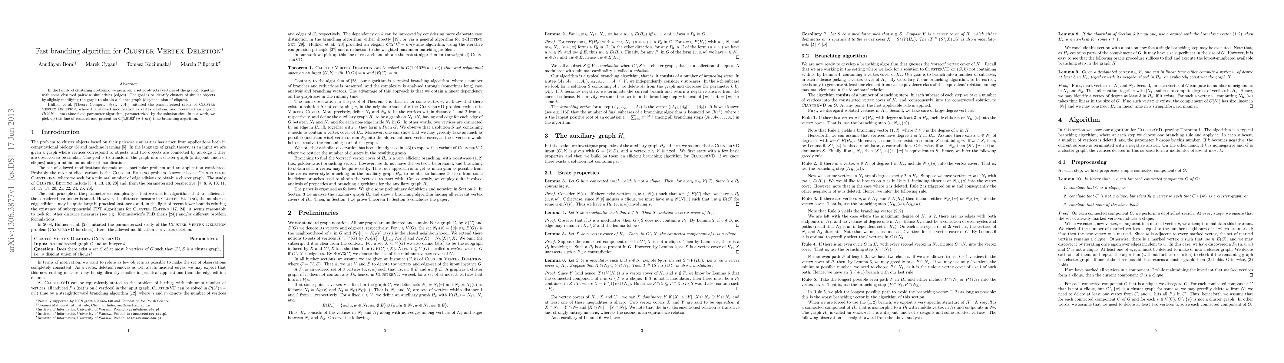 This paper introduces a faster branching algorithm, O(1.9102^k * (n + m)), for the Cluster Vertex Deletion problem, improving upon the previous O(2^k * k^9 + n * m)-time fixed-parameter algorithm by Hueffner et al. The objective is to identify clusters in a graph by deleting vertices to form a cluster graph consisting of disjoint cliques.