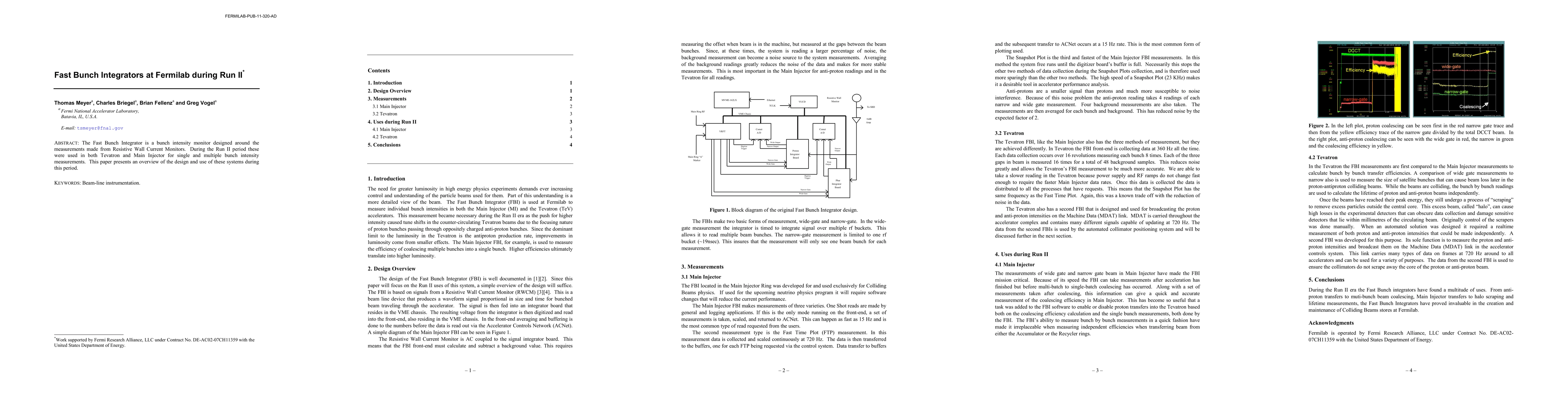 The Fast Bunch Integrator is a bunch intensity monitor designed around the measurements made from Resistive Wall Current Monitors. During the Run II period these were used in both Tevatron and Main Injector for single and multiple bunch intensity measurements. This paper presents an overview of the design and use of these systems during this period.