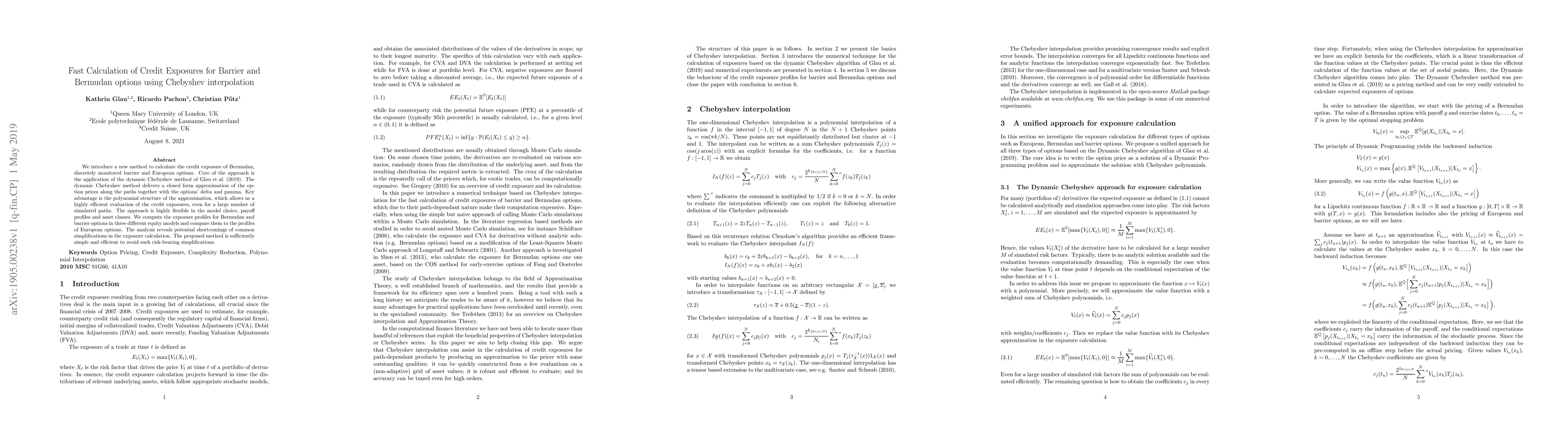 This paper introduces a dynamic Chebyshev interpolation method for efficiently calculating credit exposures of Bermudan and barrier options, offering fast and accurate approximations compared to traditional methods. The method's polynomial structure enables efficient evaluation even with numerous simulated paths, demonstrating flexibility across various equity models.