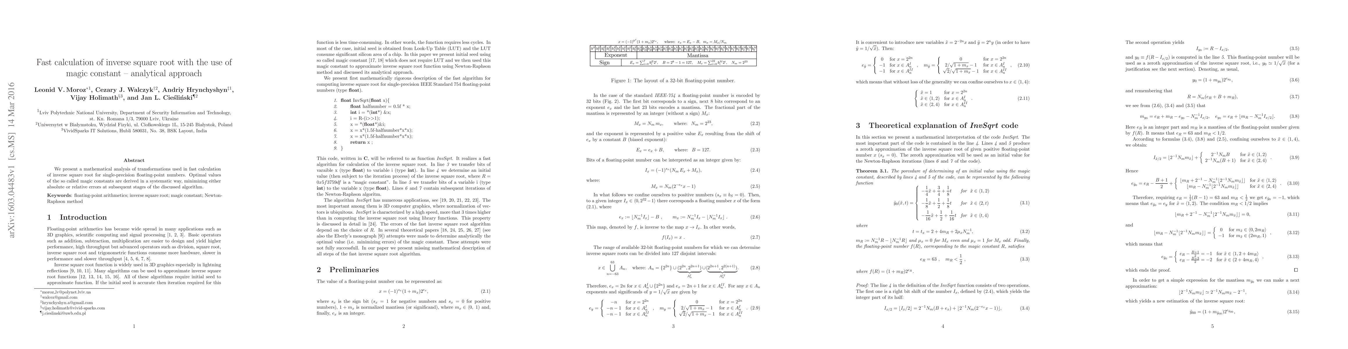 This research paper presents a mathematical analysis to optimize the fast calculation of the inverse square root for single-precision floating-point numbers, deriving optimal "magic constants" to minimize errors and enhance computational efficiency.