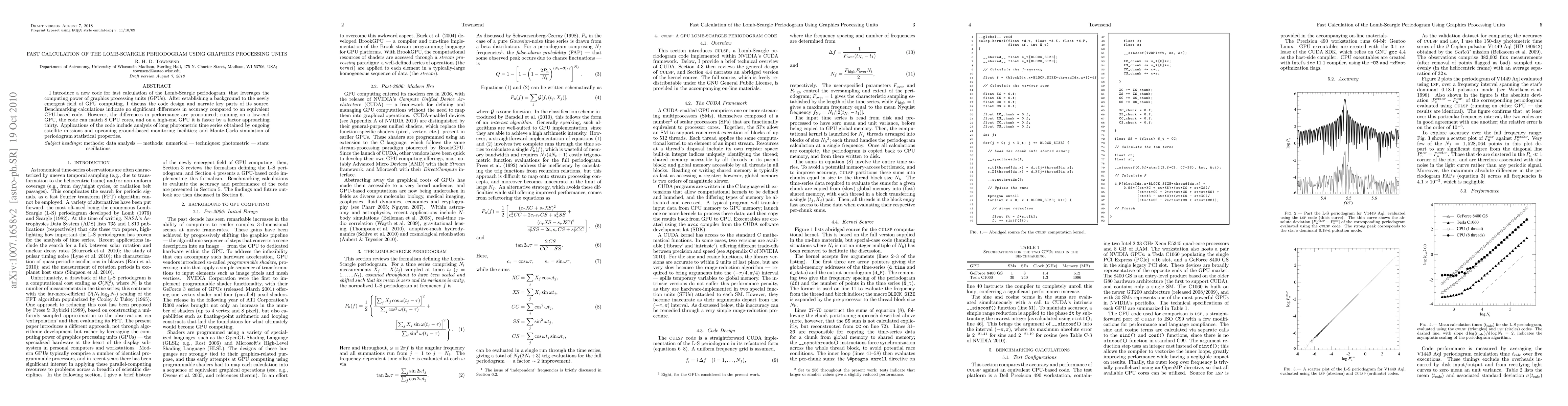 This paper introduces a GPU-based code for rapid computation of the Lomb-Scargle periodogram, significantly outperforming CPU-based methods. Benchmarks show comparable accuracy but substantial speedups, up to thirty times faster on high-end GPUs, with applications in satellite mission data analysis and statistical simulations.