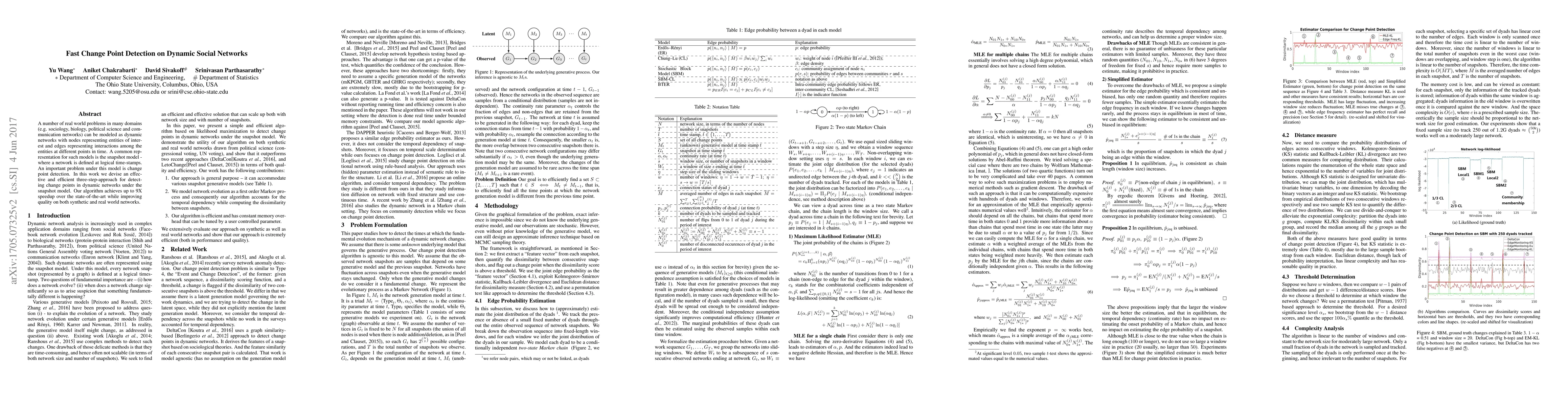 This paper proposes a three-step algorithm for fast change point detection in dynamic social networks using the snapshot model. The method achieves a 9X speedup over existing techniques while maintaining high detection accuracy on both synthetic and real-world datasets.