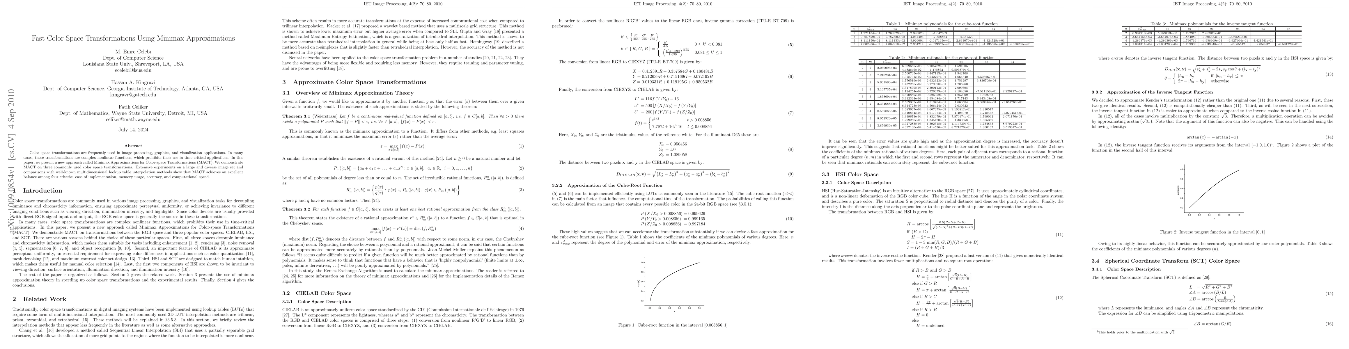 A new approach called Minimax Approximations for Color-space Transformations offers a balance between ease of implementation, memory usage, accuracy, and computational speed in color space transformations, outperforming existing methods.
