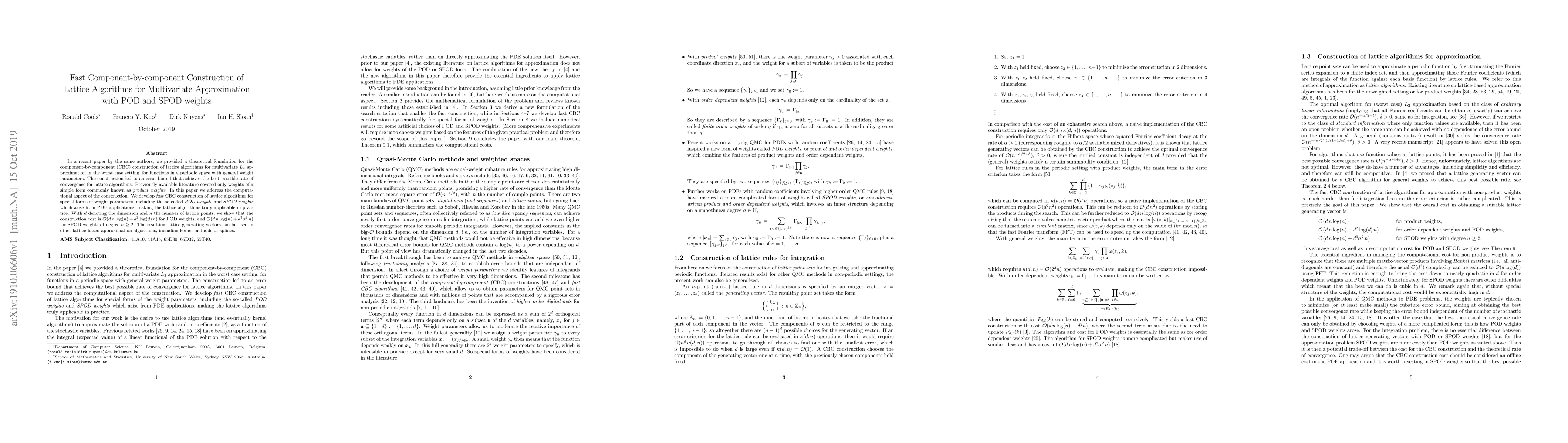 Researchers develop fast lattice algorithms for multivariate approximation using component-by-component construction, achieving improved computational efficiency for special weight parameters like POD and SPOD weights.
