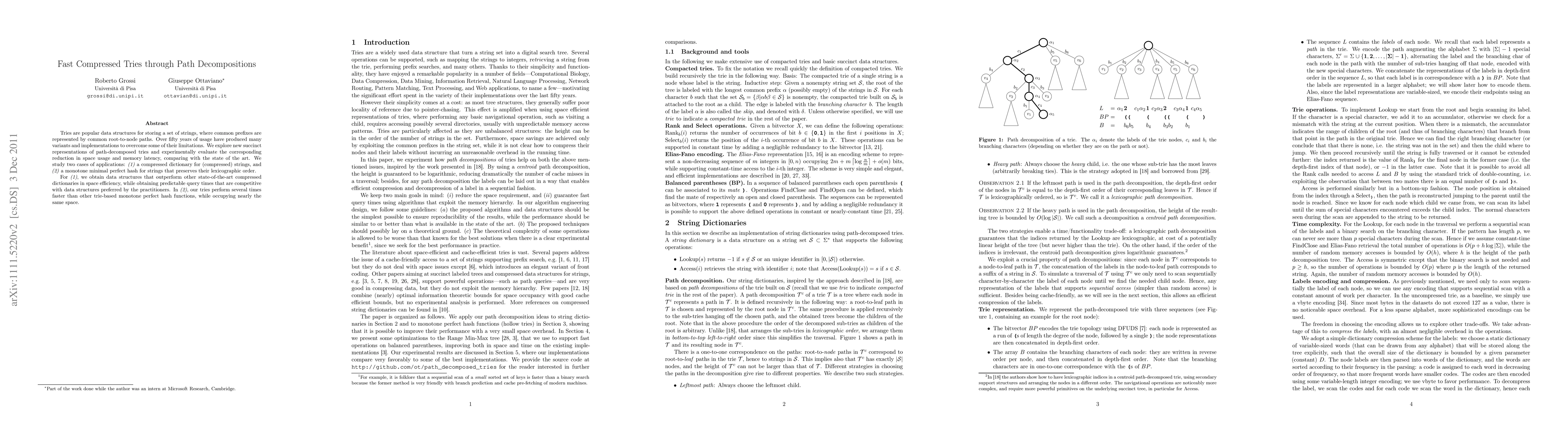 This paper proposes new succinct representations of path-decomposed tries to improve space efficiency and memory latency. The proposed structures outperform state-of-the-art compressed dictionaries and trie-based monotone perfect hash functions in various applications.