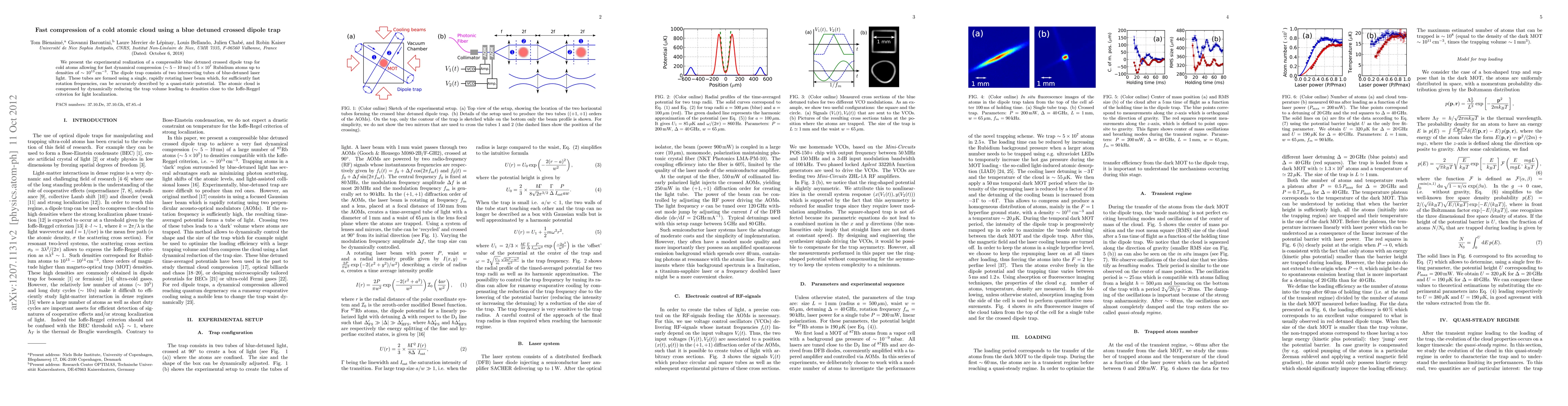 This paper details an experimental setup using a blue detuned crossed dipole trap to rapidly compress a cold atomic cloud of Rubidium atoms in ~5-10 ms, achieving densities up to ~10^13 cm^-3, close to the Ioffe-Reggel criterion for light localization. The trap employs two intersecting tubes of blue-detuned laser light formed by a rotating laser beam.