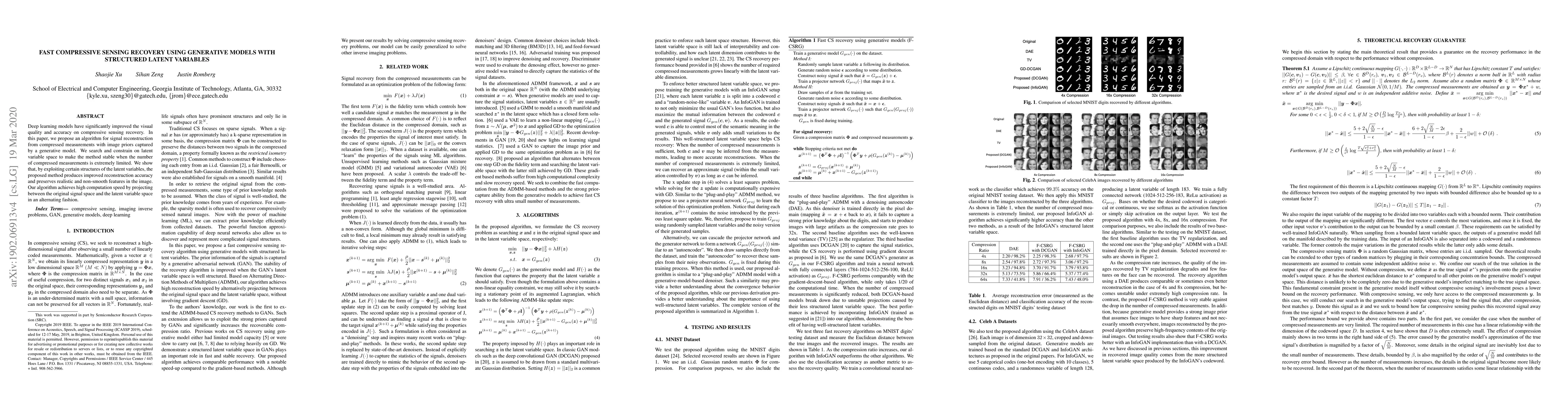 Deep learning models have significantly improved the visual quality and accuracy on compressive sensing recovery. In this paper, we propose an algorithm for signal reconstruction from compressed measurements with image priors captured by a generative model. We search and constrain on latent variable space to make the method stable when the number of compressed measurements is extremely limited. We show that, by exploiting certain structures of the latent variables, the proposed method produces improved reconstruction accuracy and preserves realistic and non-smooth features in the image. Our algorithm achieves high computation speed by projecting between the original signal space and the latent variable space in an alternating fashion.