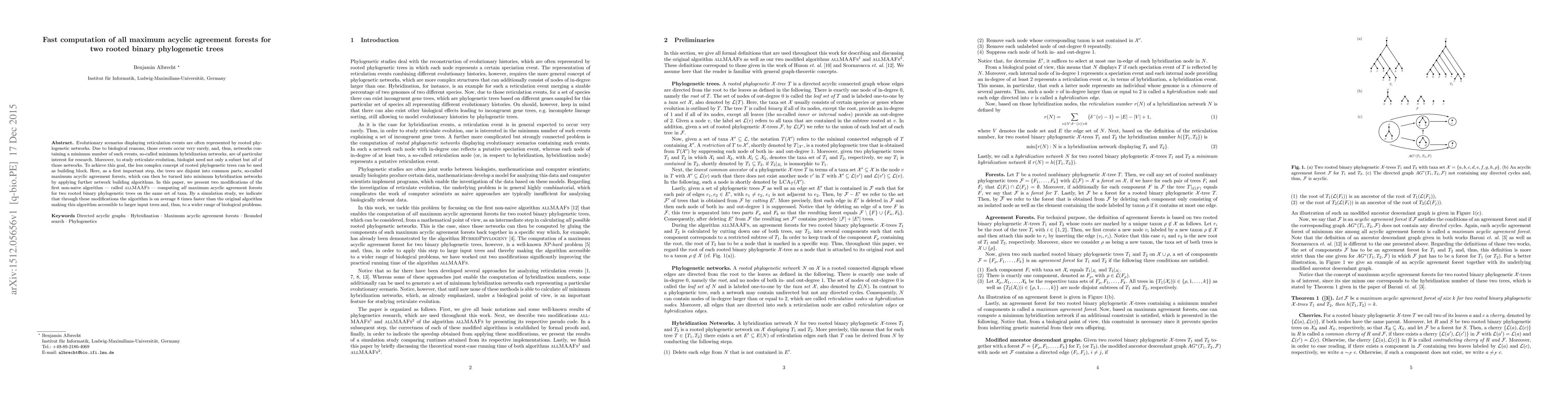 Evolutionary scenarios displaying reticulation events are often represented by rooted phylogenetic networks. Due to biological reasons, those events occur very rarely, and, thus, networks containing a minimum number of such events, so-called minimum hybridization networks, are of particular interest for research. Moreover, to study reticulate evolution, biologist need not only a subset but all of those networks. To achieve this goal, the less complex concept of rooted phylogenetic trees can be used as building block. Here, as a first important step, the trees are disjoint into common parts, so-called maximum acyclic agreement forests, which can then be turned into minimum hybridization networks by applying further network building algorithms. In this paper, we present two modifications of the first non-naive algorithm --- called allMAAFs --- computing all maximum acyclic agreement forests for two rooted binary phylogenetic trees on the same set of taxa. By a simulation study, we indicate that through these modifications the algorithm is on average 8 times faster than the original algorithm making this algorithm accessible to larger input trees and, thus, to a wider range of biological problems.