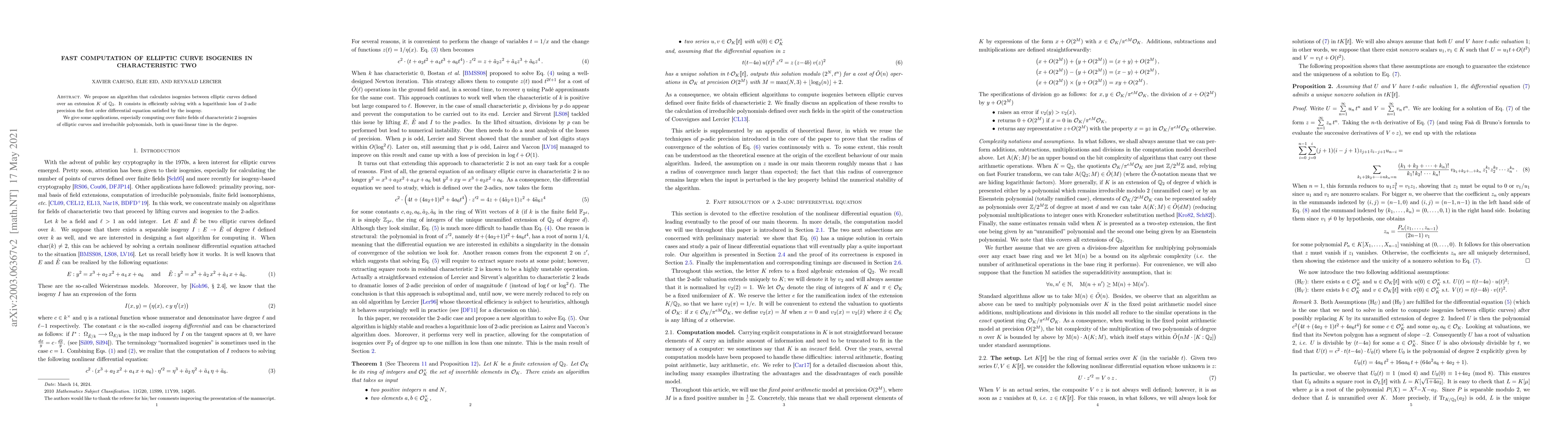 This research proposes an algorithm to efficiently calculate isogenies between elliptic curves over a 2-adic extension, achieving quasi-linear time computation in characteristic two.