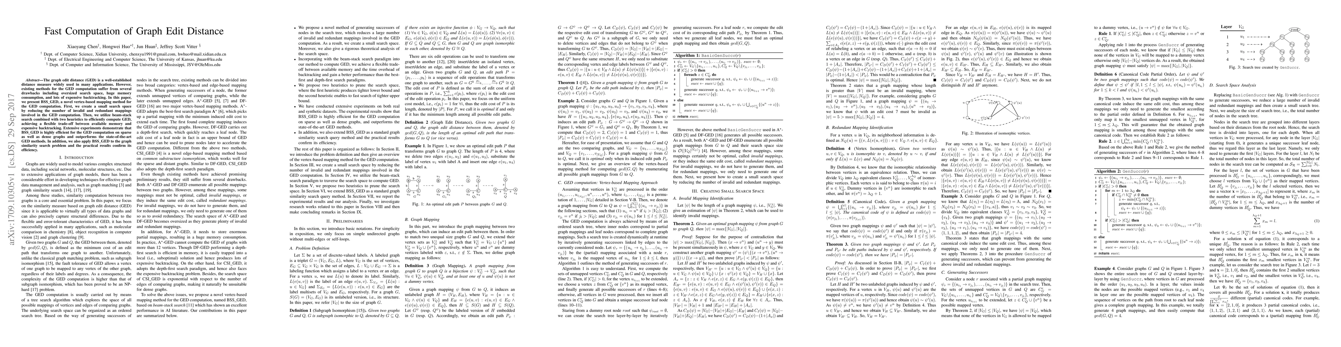 This paper introduces BSS_GED, a novel vertex-based mapping method for computing the graph edit distance (GED) efficiently. It reduces the search space and memory consumption while minimizing backtracking, outperforming existing methods in both sparse and dense graphs.