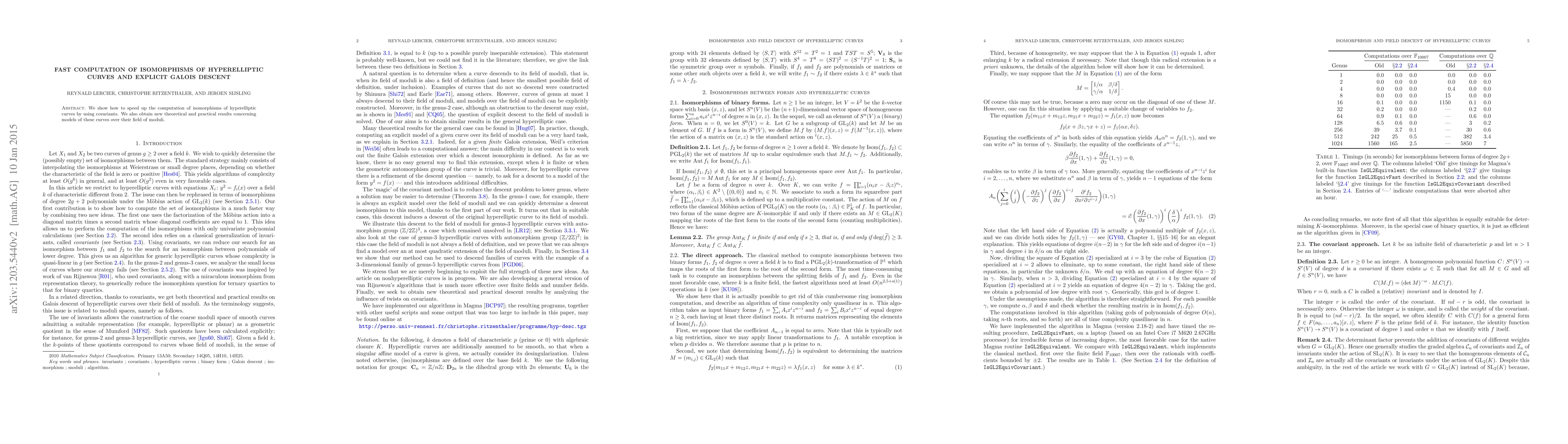Researchers developed a method to speed up computation of isomorphisms of hyperelliptic curves using covariants, leading to new theoretical and practical results about these curve models over their field of moduli.