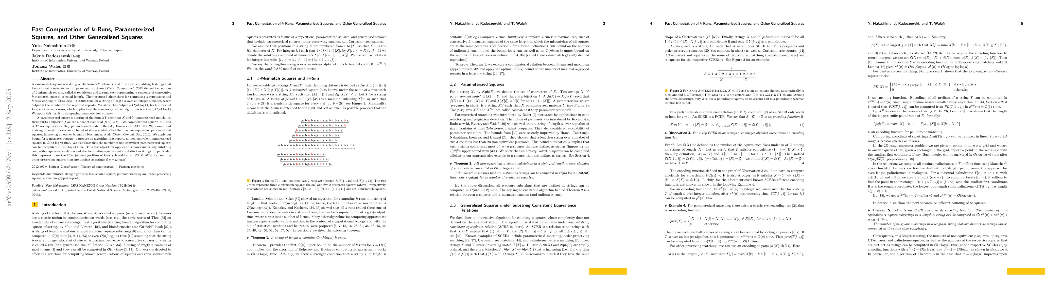 A $k$-mismatch square is a string of the form $XY$ where $X$ and $Y$ are two equal-length strings that have at most $k$ mismatches. Kolpakov and Kucherov [Theor. Comput. Sci., 2003] defined two notions of $k$-mismatch repeats, called $k$-repetitions and $k$-runs, each representing a sequence of consecutive $k$-mismatch squares of equal length. They proposed algorithms for computing $k$-repetitions and $k$-runs working in $O(nk \log k + output)$ time for a string of length $n$ over an integer alphabet, where $output$ is the number of the reported repeats. We show that $output=O(nk \log k)$, both in case of $k$-repetitions and $k$-runs, which implies that the complexity of their algorithms is actually $O(nk \log k)$. We apply this result to computing parameterized squares. A parameterized square is a string of the form $XY$ such that $X$ and $Y$ parameterized-match, i.e., there exists a bijection $f$ on the alphabet such that $f(X) = Y$. Two parameterized squares $XY$ and $X'Y'$ are equivalent if they parameterized match. Recently Hamai et al. [SPIRE 2024] showed that a string of length $n$ over an alphabet of size $\sigma$ contains less than $n\sigma$ non-equivalent parameterized squares, improving an earlier bound by Kociumaka et al. [Theor. Comput. Sci., 2016]. We apply our bound for $k$-mismatch repeats to propose an algorithm that reports all non-equivalent parameterized squares in $O(n\sigma \log \sigma)$ time. We also show that the number of non-equivalent parameterized squares can be computed in $O(n \log n)$ time. This last algorithm applies to squares under any substring compatible equivalence relation and also to counting squares that are distinct as strings. In particular, this improves upon the $O(n\sigma)$-time algorithm of Gawrychowski et al. [CPM 2023] for counting order-preserving squares that are distinct as strings if $\sigma = \omega(\log n)$.