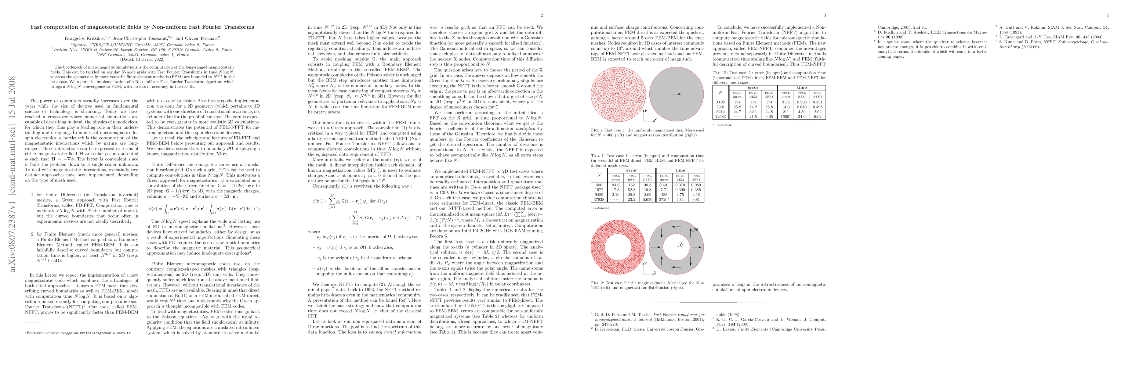 A Non-uniform Fast Fourier Transform (NFFT) algorithm is used to compute magnetostatic fields for micromagnetics simulations based on Finite Element Methods (FEM)