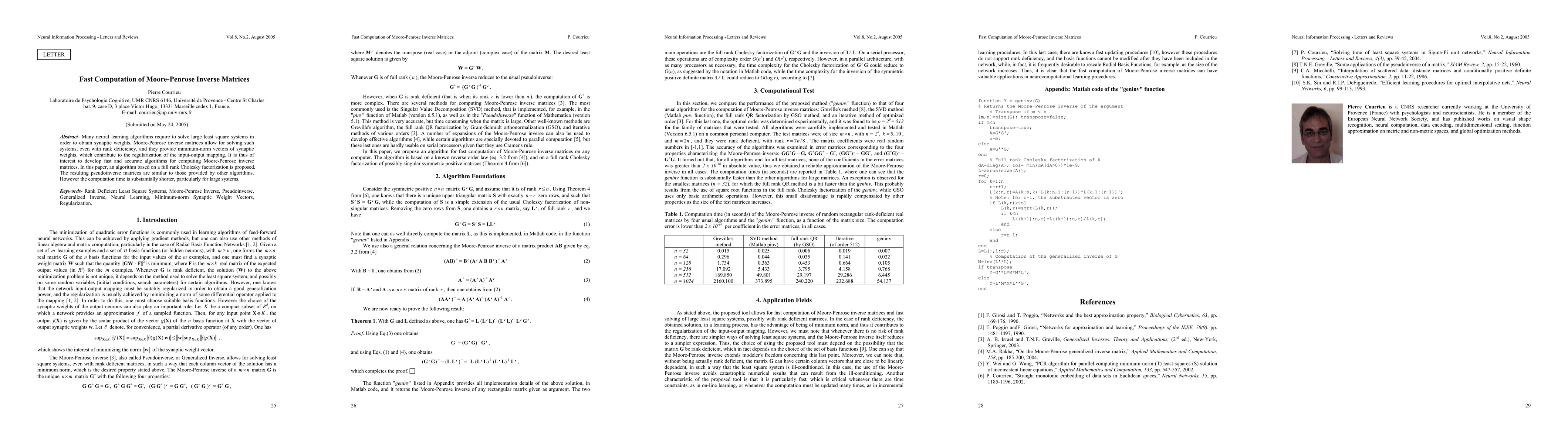 This research is important because it provides a fast and accurate algorithm for computing Moore-Penrose inverse matrices, which can be used in neural learning algorithms.