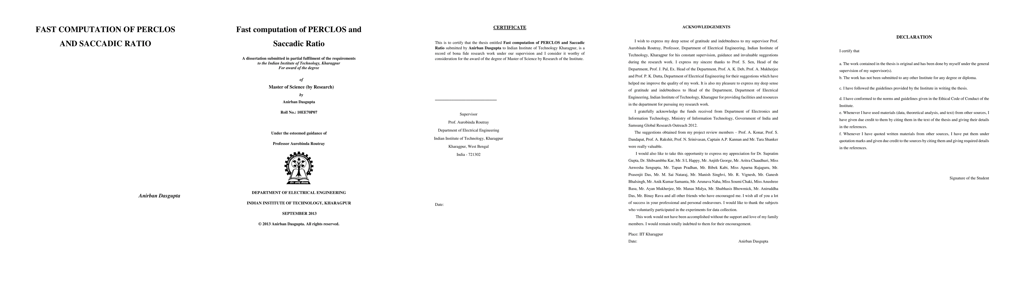 This thesis describes the development of fast algorithms for the computation of PERcentage CLOSure of eyes (PERCLOS) and Saccadic Ratio (SR). PERCLOS and SR are two ocular parameters reported to be measures of alertness levels in human beings. PERCLOS is the percentage of time in which at least 80% of the eyelid remains closed over the pupil. Saccades are fast and simultaneous movement of both the eyes in the same direction. SR is the ratio of peak saccadic velocity to the saccadic duration. This thesis addresses the issues of image based estimation of PERCLOS and SR, prevailing in the literature such as illumination variation, poor illumination conditions, head rotations etc. In this work, algorithms for real-time PERCLOS computation has been developed and implemented on an embedded platform. The platform has been used as a case study for assessment of loss of attention in automotive drivers. The SR estimation has been carried out offline as real-time implementation requires high frame rates of processing which is difficult to achieve due to hardware limitations. The accuracy in estimation of the loss of attention using PERCLOS and SR has been validated using brain signals, which are reported to be an authentic cue for estimating the state of alertness in human beings. The major contributions of this thesis include database creation, design and implementation of fast algorithms for estimating PERCLOS and SR on embedded computing platforms.
