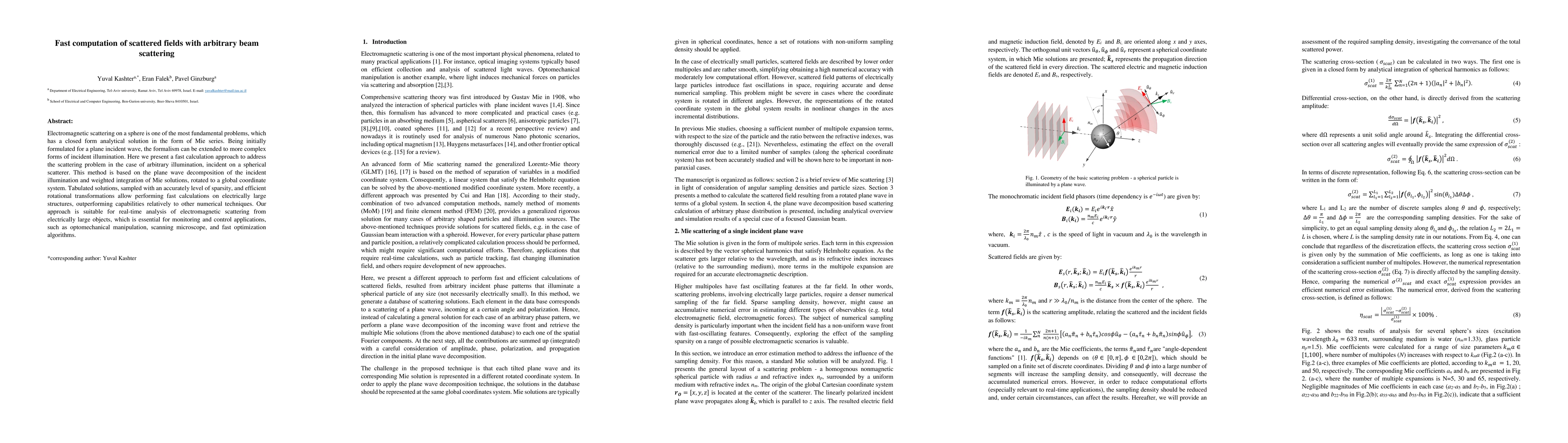 This paper presents a fast computation method for electromagnetic scattering on a sphere under arbitrary illumination, utilizing plane wave decomposition and Mie series integration. The approach enables real-time analysis for large objects, enhancing applications like optomechanical manipulation and scanning microscopes.