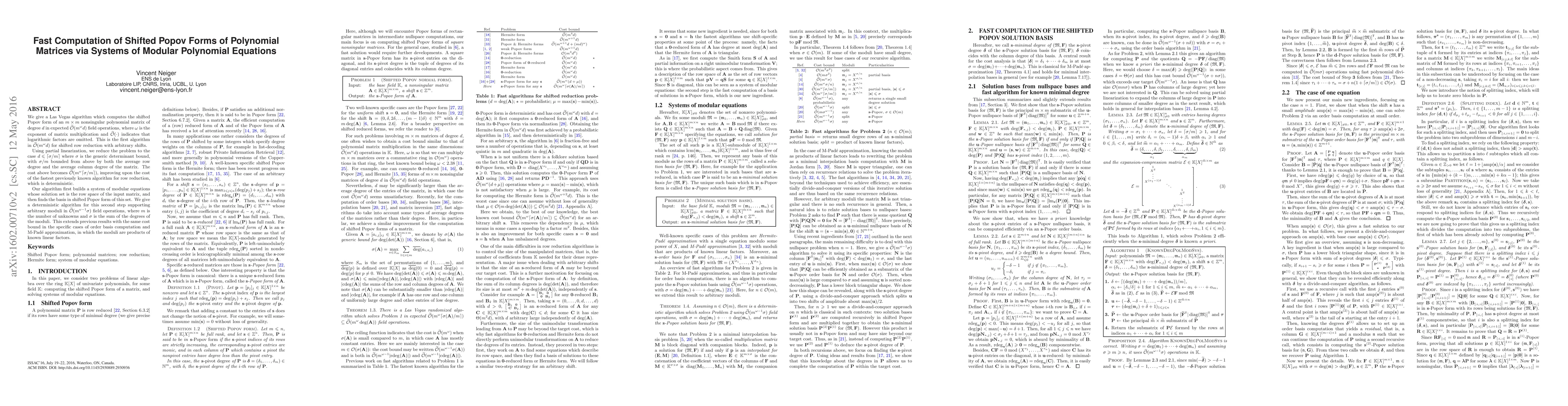 This paper presents a Las Vegas algorithm for computing the shifted Popov form of polynomial matrices, achieving an expected runtime of $\widetilde{\mathcal{O}}(m^\omega d)$ field operations, where $\omega$ is the matrix multiplication exponent. It improves upon previous algorithms by reducing the problem using partial linearization and modular polynomial equations.