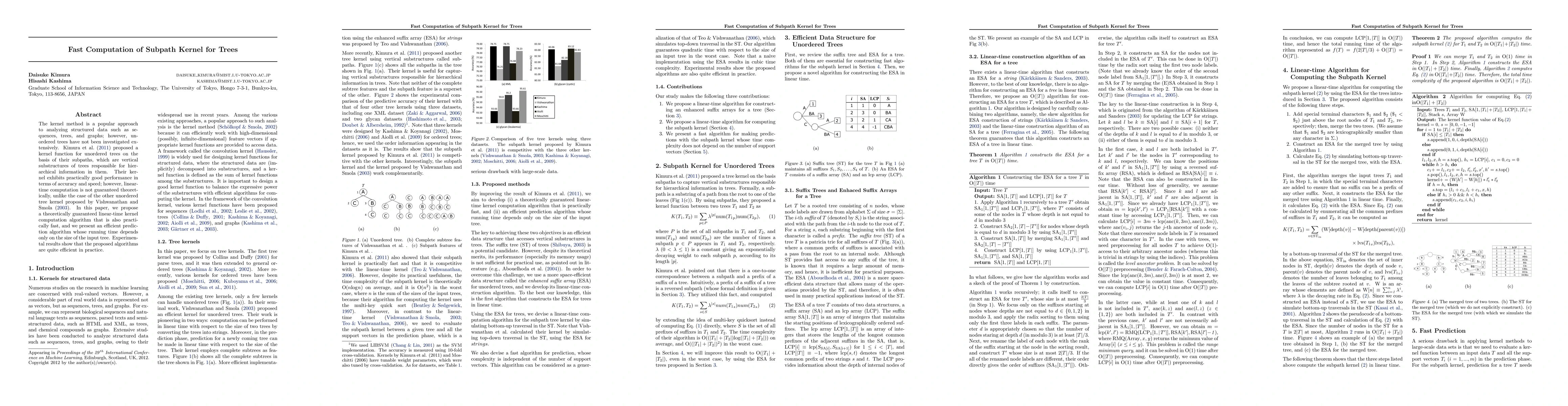This paper proposes a theoretically guaranteed linear-time algorithm for computing the subpath kernel for unordered trees, improving upon previous methods that lacked such guarantees. The new method is also practically fast and efficient, as demonstrated by experimental results.