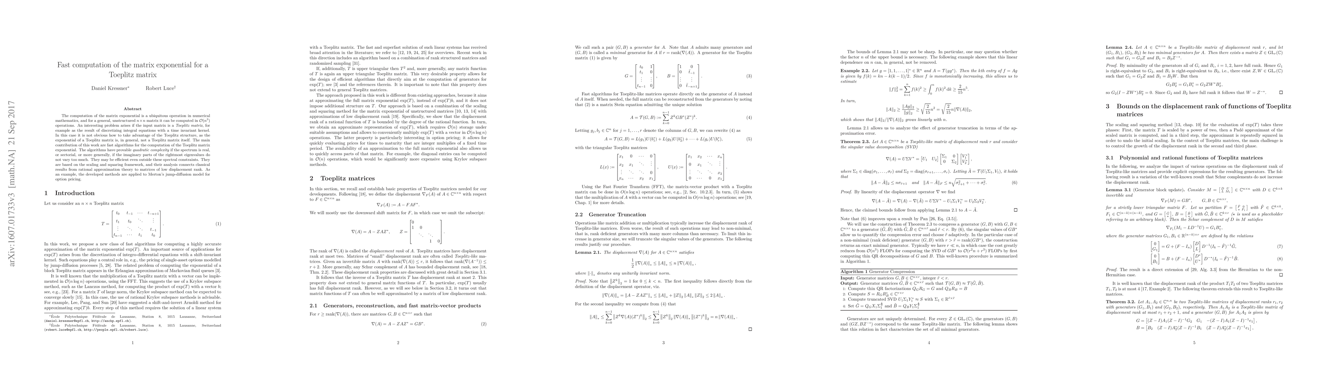This paper presents fast algorithms for computing the matrix exponential of Toeplitz matrices, achieving quadratic complexity under certain spectral conditions. The methods leverage scaling and squaring techniques and are demonstrated through their application to Merton's jump-diffusion model for option pricing.