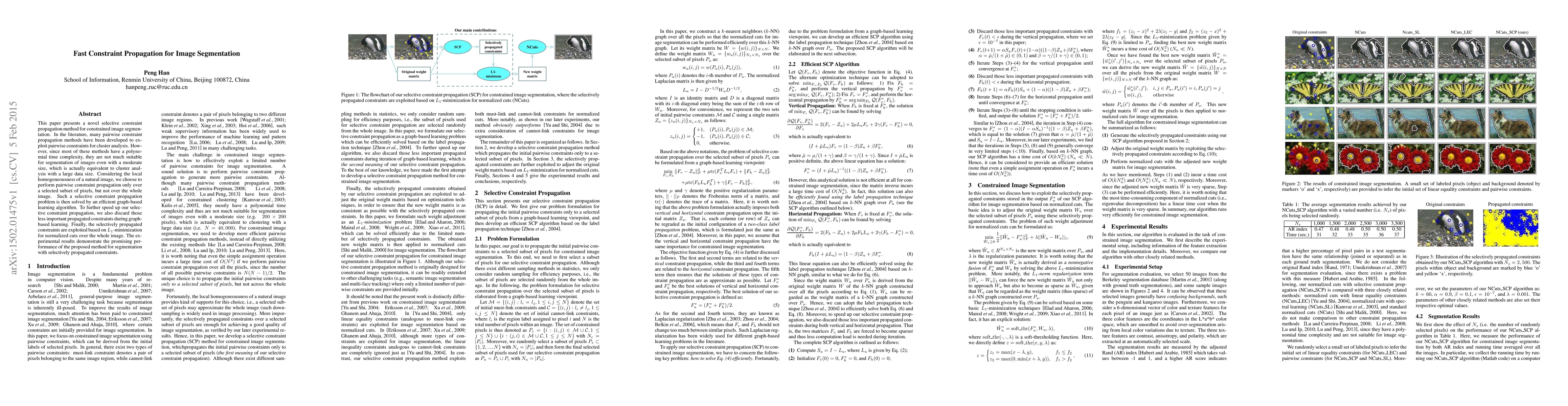 This paper introduces a selective constraint propagation method for image segmentation, leveraging an efficient graph-based learning algorithm to focus on a subset of pixels, thereby reducing computational complexity and improving performance for moderate-sized images. The method also discards less important constraints to further speed up processing, achieving promising segmentation results.