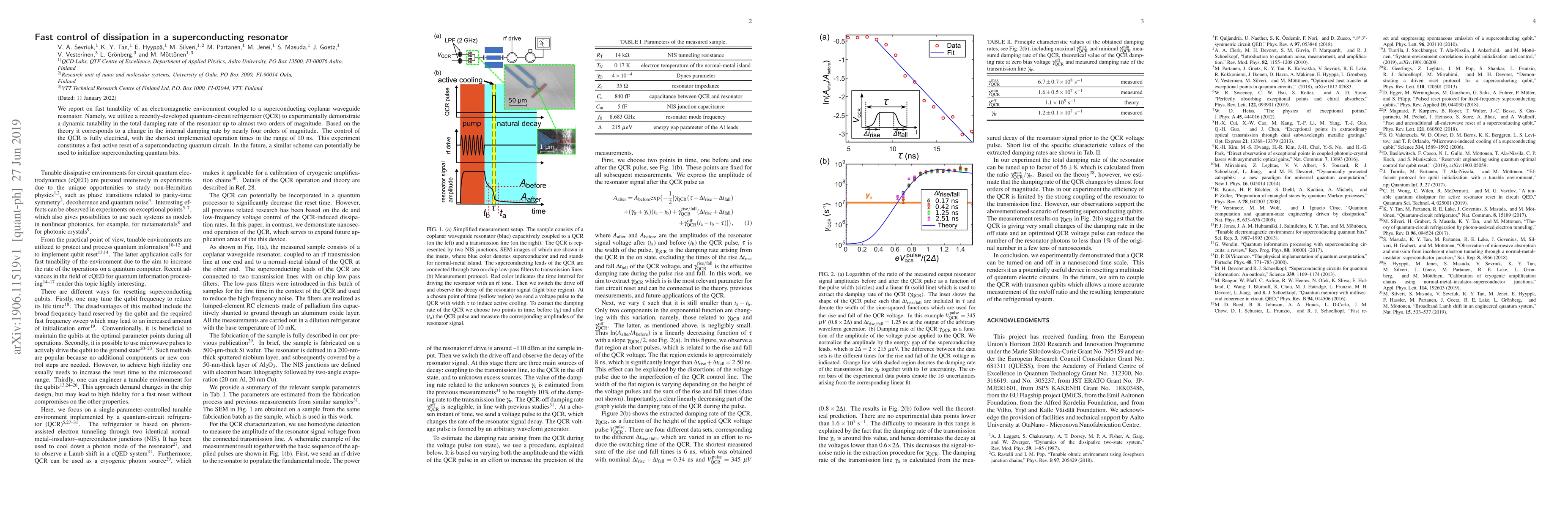 This paper demonstrates the dynamic tunability of a superconducting resonator's damping rate using a quantum-circuit refrigerator, achieving control over the resonator's internal damping by nearly four orders of magnitude with electrical control and operation times as short as 10 ns. This fast active reset technique could potentially initialize superconducting quantum bits in future applications.