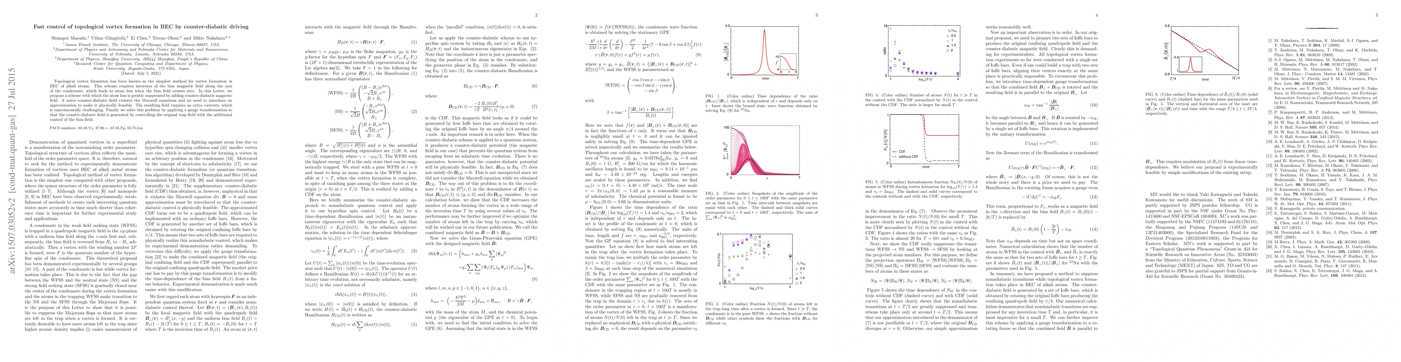 Topological vortex formation has been known as the simplest method for vortex formation in BEC of alkali atoms. This scheme requires inversion of the bias magnetic field along the axis of the condensate, which leads to atom loss when the bias field crosses zero. In this Letter, we propose a scheme with which the atom loss is greatly suppressed by adding counter-diabatic magnetic field. A naive counter-diabatic field violates the Maxwell equations and we need to introduce an approximation to make it physically feasible. The resulting field requires an extra currents, which is experimentally challenging. Finally we solve this problem by applying a gauge transformation so that the counter-diabatic field is generated by controlling the original trap field with the additional control of the bias field.