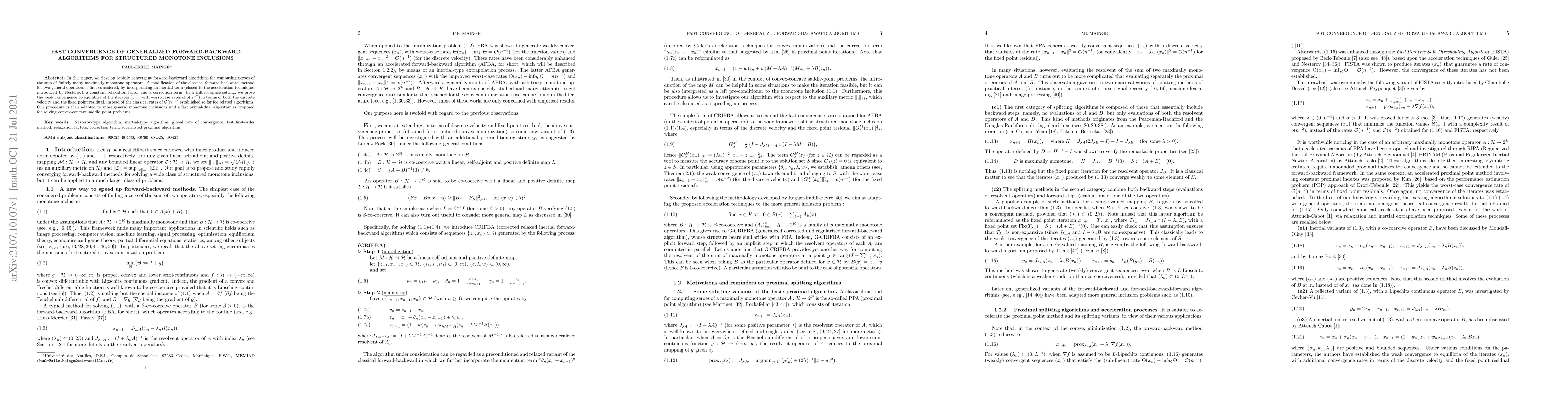 This paper introduces a novel forward-backward algorithm incorporating inertial terms and relaxation factors, achieving faster convergence rates of $o(n^{-2})$ compared to classical ${\cal O}(n^{-1})$ methods for solving structured monotone inclusions. The method is extended to handle convex-concave saddle point problems efficiently.