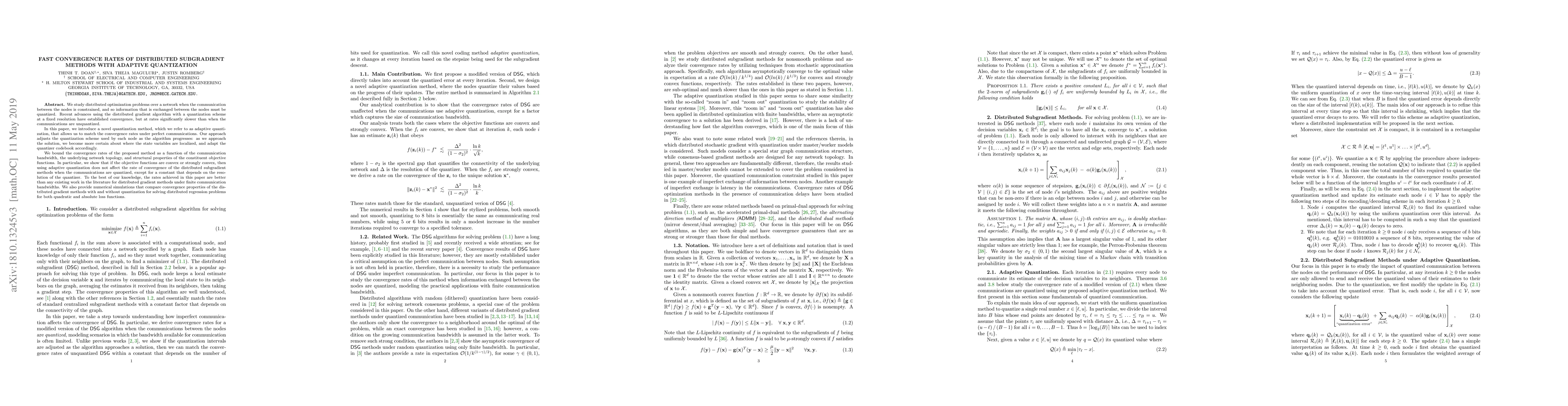 This paper introduces adaptive quantization to improve the convergence rates of distributed subgradient methods under communication constraints. The proposed adaptive quantization method adjusts the quantization resolution dynamically, achieving convergence rates comparable to unquantized communication, outperforming existing methods.