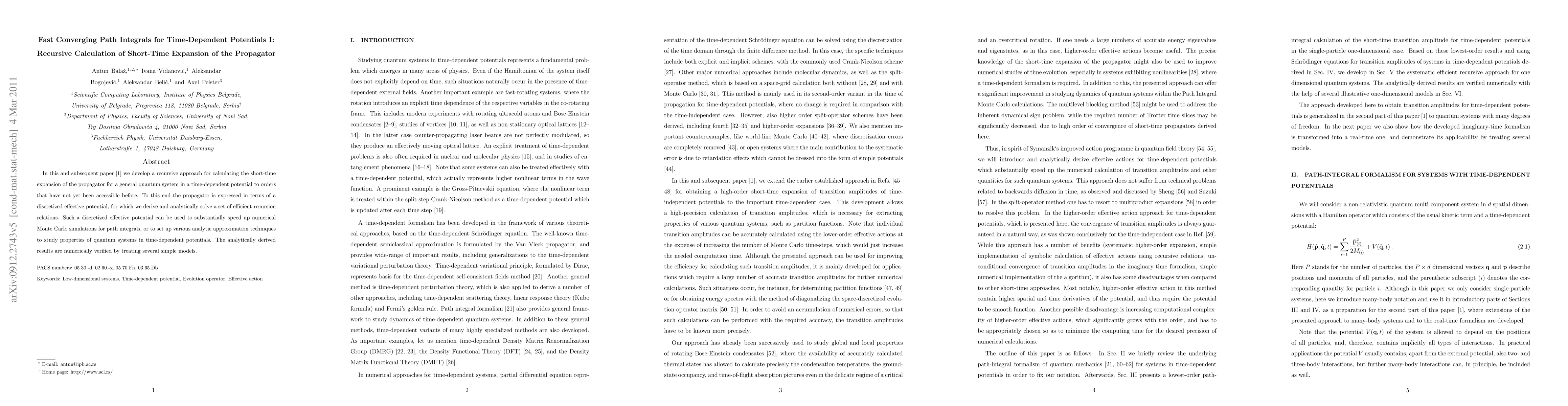 This paper introduces a recursive method for calculating the short-time expansion of the propagator in quantum systems under time-dependent potentials, achieving previously inaccessible orders. The approach uses a discretized effective potential and efficient recursion relations to speed up numerical simulations and analytic approximation techniques.