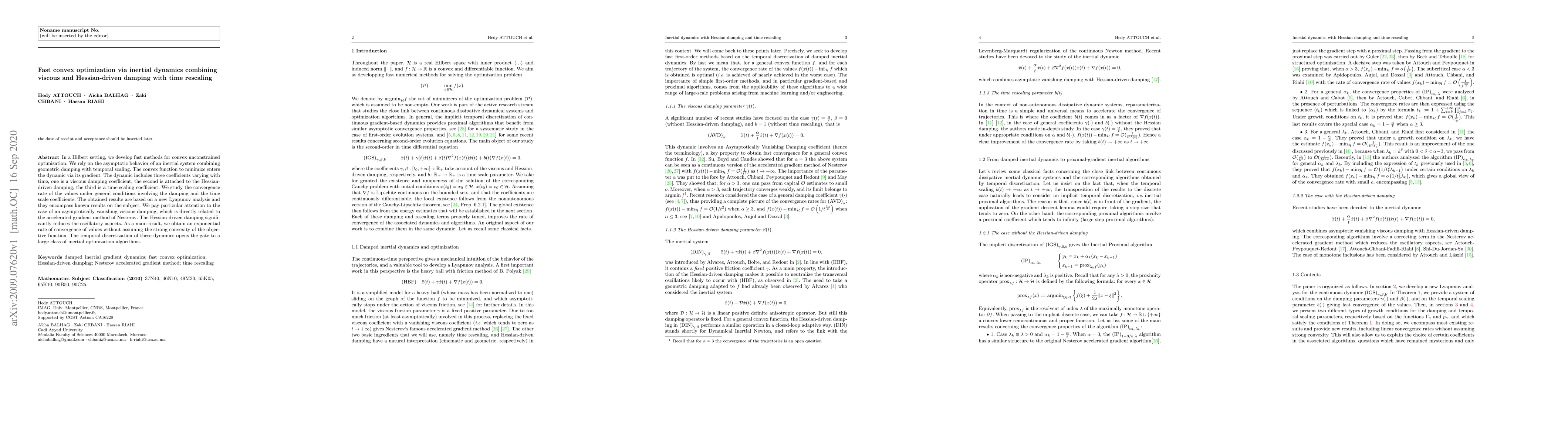This paper proposes fast convex optimization methods using inertial dynamics with geometric damping and time rescaling. It achieves an exponential convergence rate without requiring strong convexity, leveraging a new Lyapunov analysis and extending known results, particularly relating to Nesterov's accelerated gradient method.