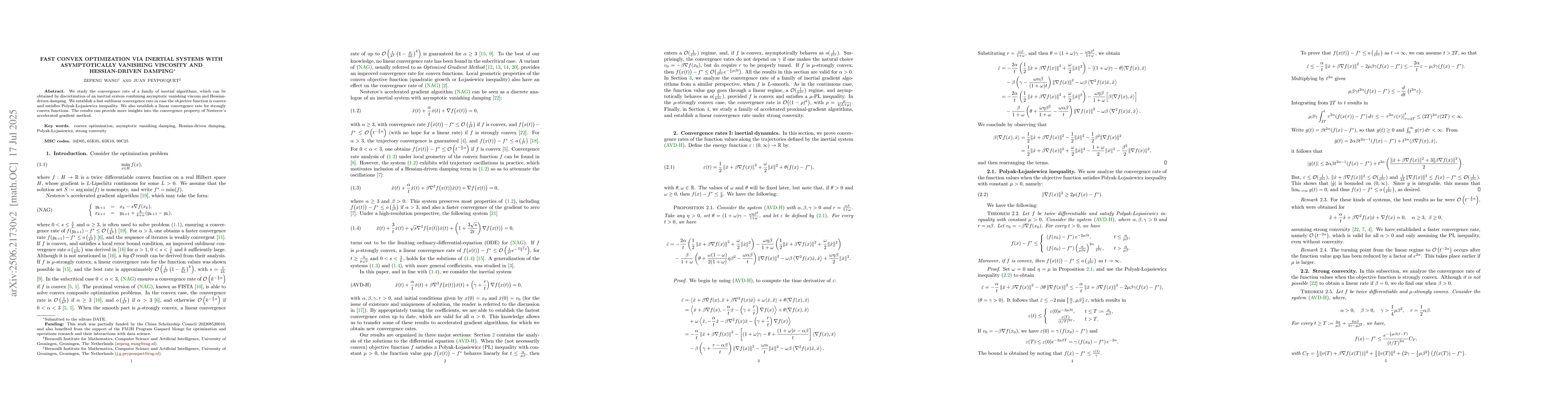 We study the convergence rate of a family of inertial algorithms, which can be obtained by discretization of an inertial system combining asymptotic vanishing viscous and Hessian-driven damping. We establish a fast sublinear convergence rate in case the objective function is convex and satisfies Polyak-\L ojasiewicz inequality. We also establish a linear convergence rate for smooth strongly convex functions. The results can provide more insights into the convergence property of Nesterov's accelerated gradient method.