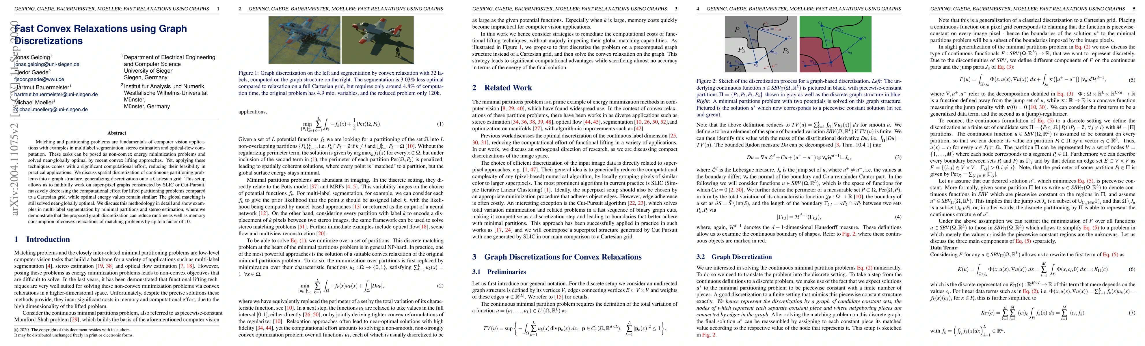 Matching and partitioning problems are fundamentals of computer vision applications with examples in multilabel segmentation, stereo estimation and optical-flow computation. These tasks can be posed as non-convex energy minimization problems and solved near-globally optimal by recent convex lifting approaches. Yet, applying these techniques comes with a significant computational effort, reducing their feasibility in practical applications. We discuss spatial discretization of continuous partitioning problems into a graph structure, generalizing discretization onto a Cartesian grid. This setup allows us to faithfully work on super-pixel graphs constructed by SLIC or Cut-Pursuit, massively decreasing the computational effort for lifted partitioning problems compared to a Cartesian grid, while optimal energy values remain similar: The global matching is still solved near-globally optimal. We discuss this methodology in detail and show examples in multi-label segmentation by minimal partitions and stereo estimation, where we demonstrate that the proposed graph discretization can reduce runtime as well as memory consumption of convex relaxations of matching problems by up to a factor of 10.