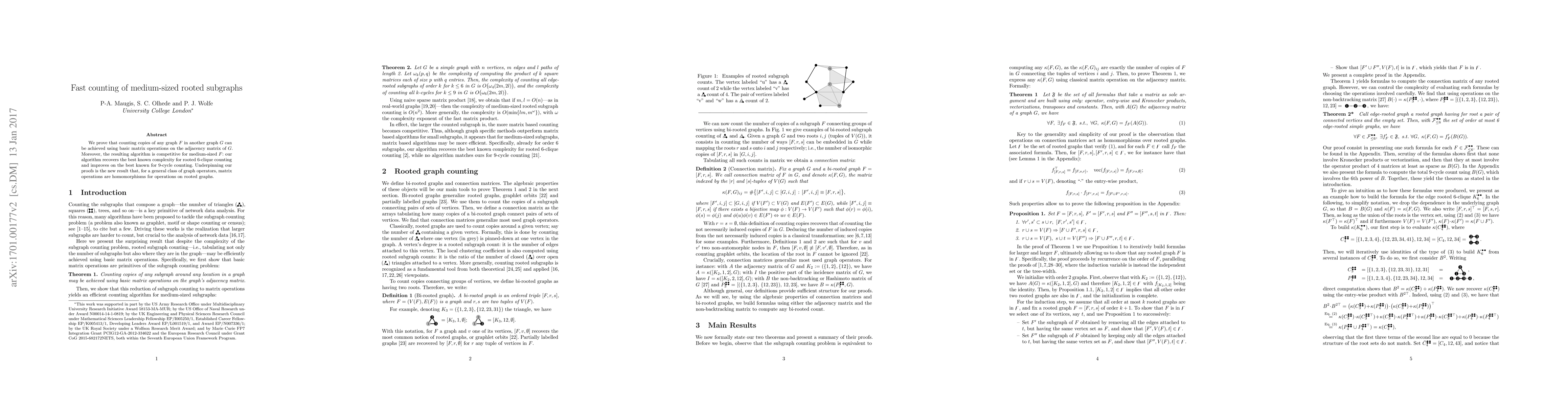 This paper presents an efficient algorithm for counting medium-sized rooted subgraphs in a given graph using matrix operations on the adjacency matrix, achieving competitive results for specific cases like 6-clique and 9-cycle counting. The method leverages the new finding that matrix operations correspond to homomorphisms for rooted graph operations.