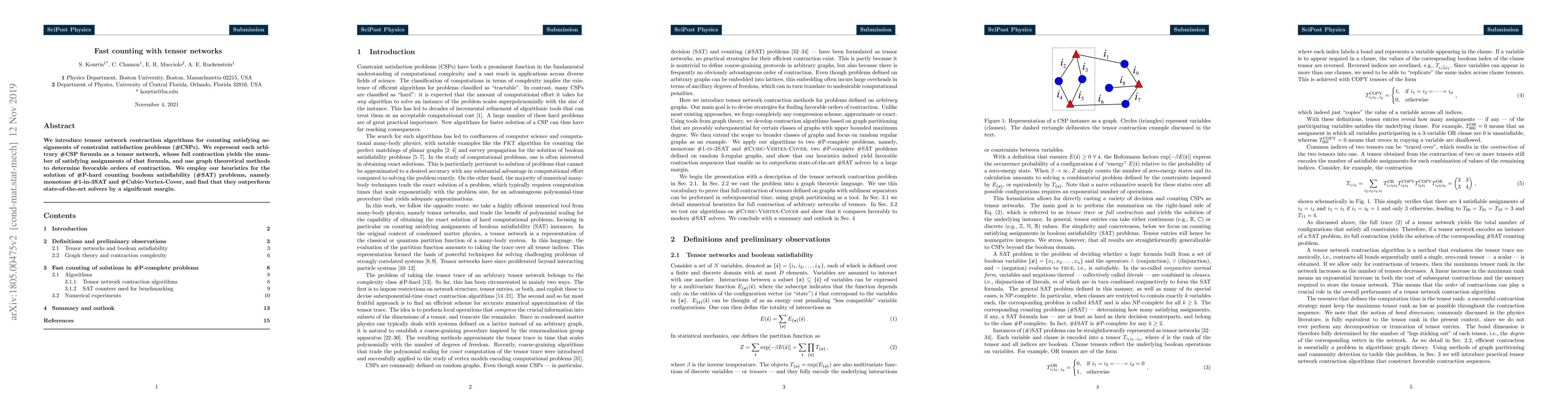 This paper presents tensor network contraction algorithms to efficiently count satisfying assignments of constraint satisfaction problems (#CSPs). The authors use graph theoretical methods to determine optimal contraction orders, achieving significant improvements over state-of-the-art solvers for #P-hard problems like monotone #1-in-3SAT and #Cubic-Vertex-Cover.