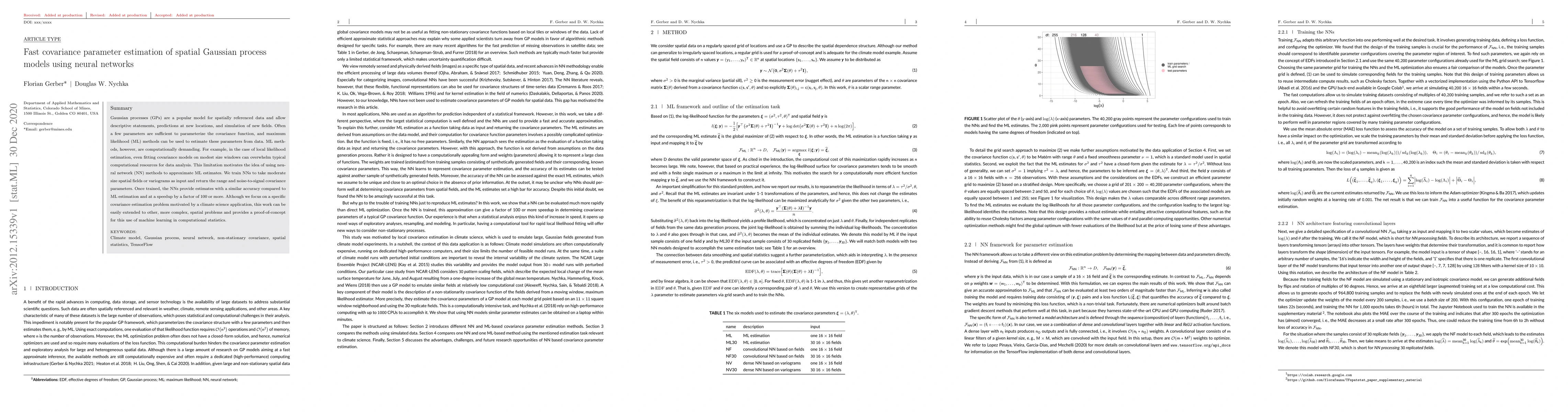 This paper proposes using neural networks to rapidly estimate covariance parameters for spatial Gaussian process models, significantly speeding up the computationally intensive maximum likelihood estimation process. The trained neural networks achieve similar accuracy to traditional methods but offer a speedup of over 100 times, demonstrating the potential of machine learning in computational statistics.