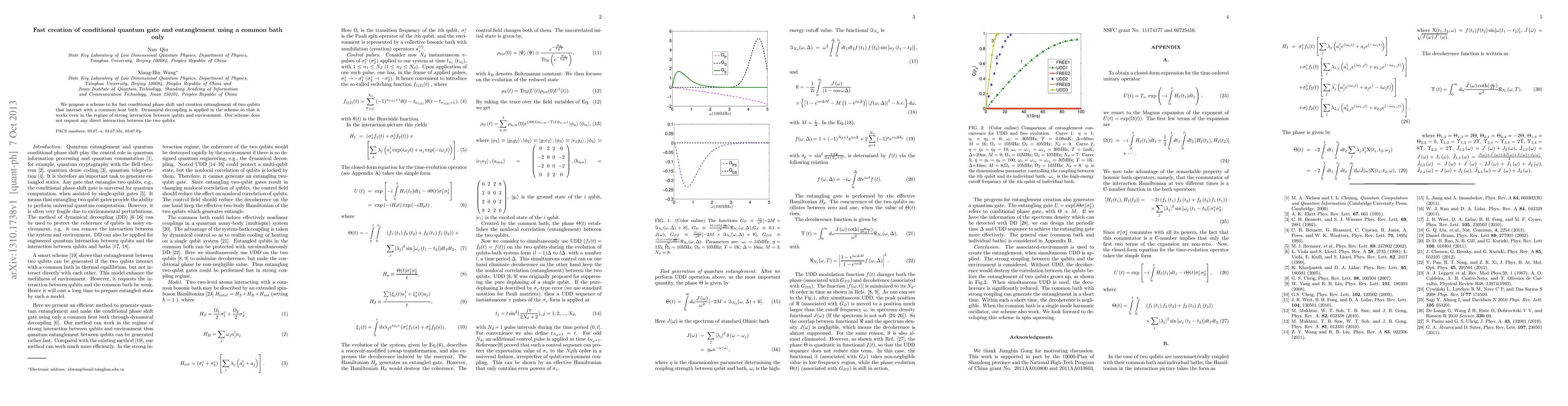 Summary: This paper proposes a method for fast conditional quantum gate operations and entanglement creation using only a common heat bath, employing dynamical decoupling to function effectively even with strong qubit-environment interactions, without requiring direct interaction between qubits.