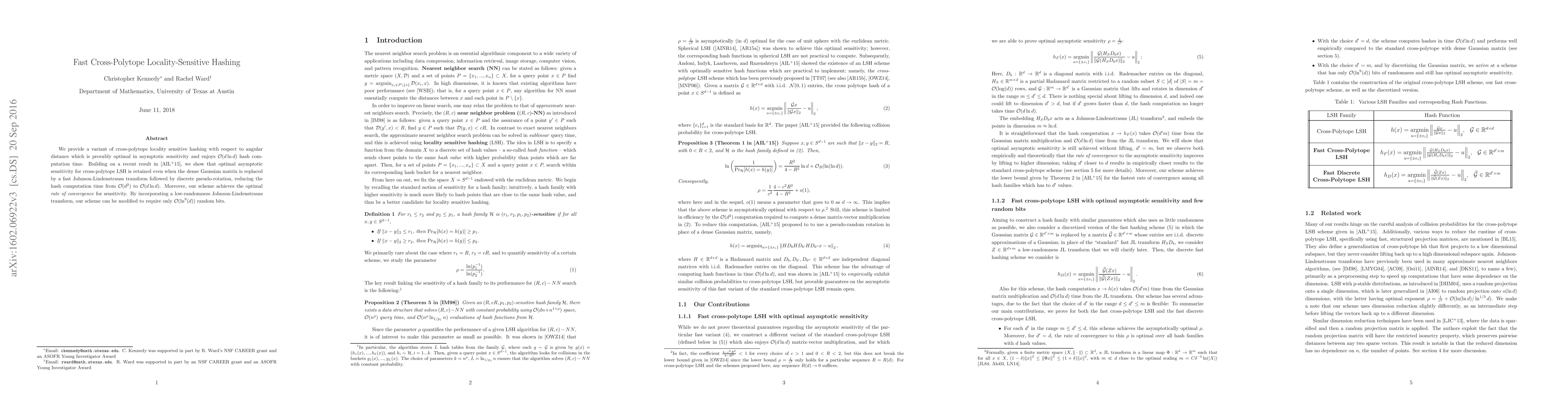 This paper introduces a fast variant of cross-polytope locality-sensitive hashing (LSH) that achieves optimal asymptotic sensitivity while reducing hash computation time from $\mathcal{O}(d^2)$ to $\mathcal{O}(d \ln d)$. It leverages a Johnson-Lindenstrauss transform and pseudo-rotation to achieve this efficiency.