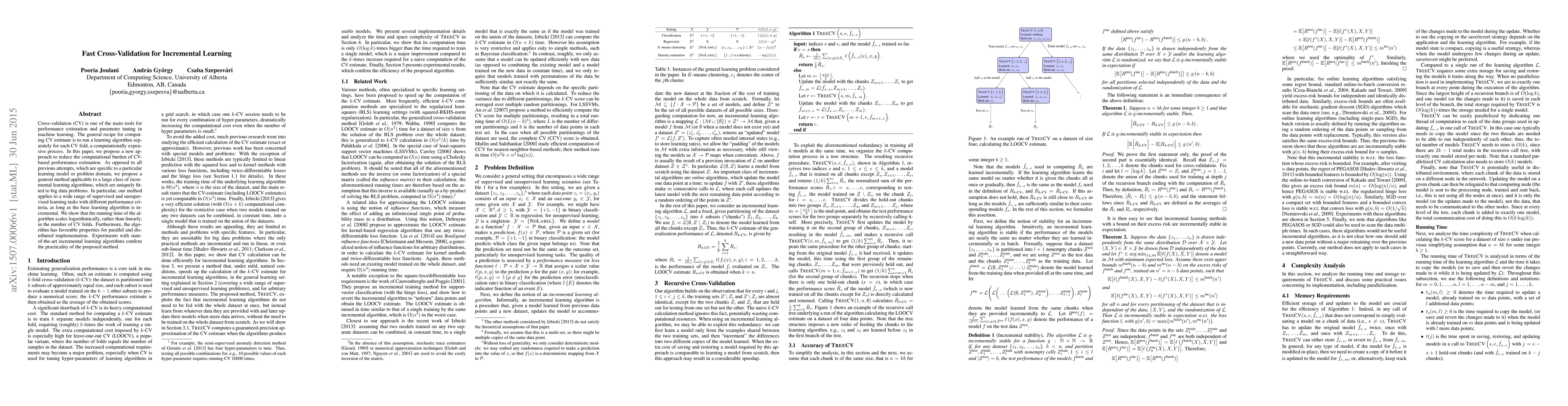 This paper introduces a novel general method to perform fast cross-validation for incremental learning algorithms, significantly reducing computational costs by scaling logarithmically with the number of folds, and demonstrating practical applicability across various supervised and unsupervised tasks.