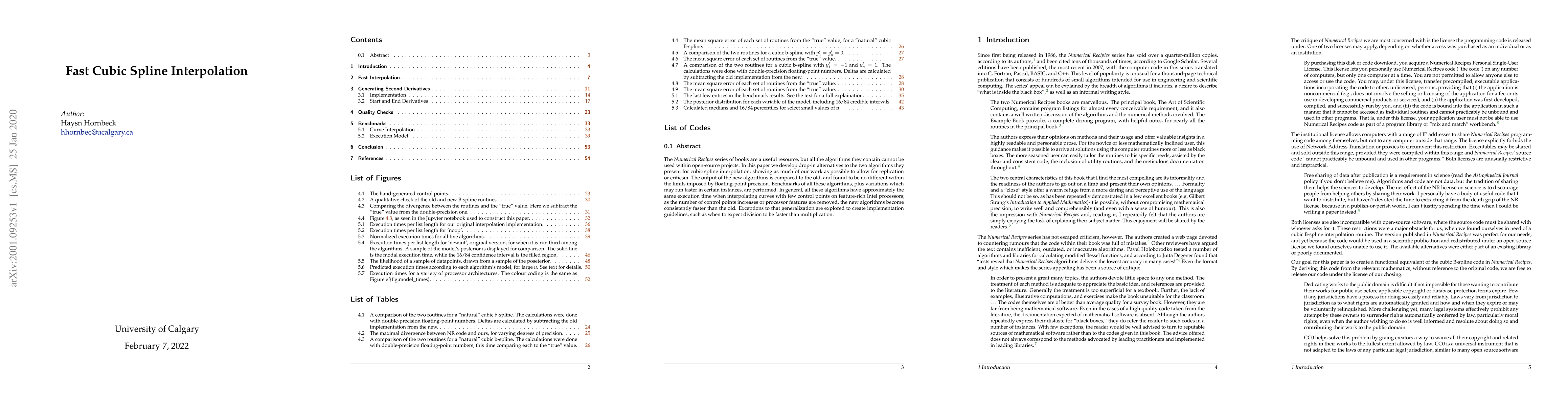 This paper presents open-source alternatives to cubic spline interpolation algorithms from Numerical Recipes, demonstrating equivalent accuracy and improved performance, especially for larger datasets and less powerful processors. Benchmarks show comparable execution times for small datasets but faster speeds for the new algorithms in other scenarios.