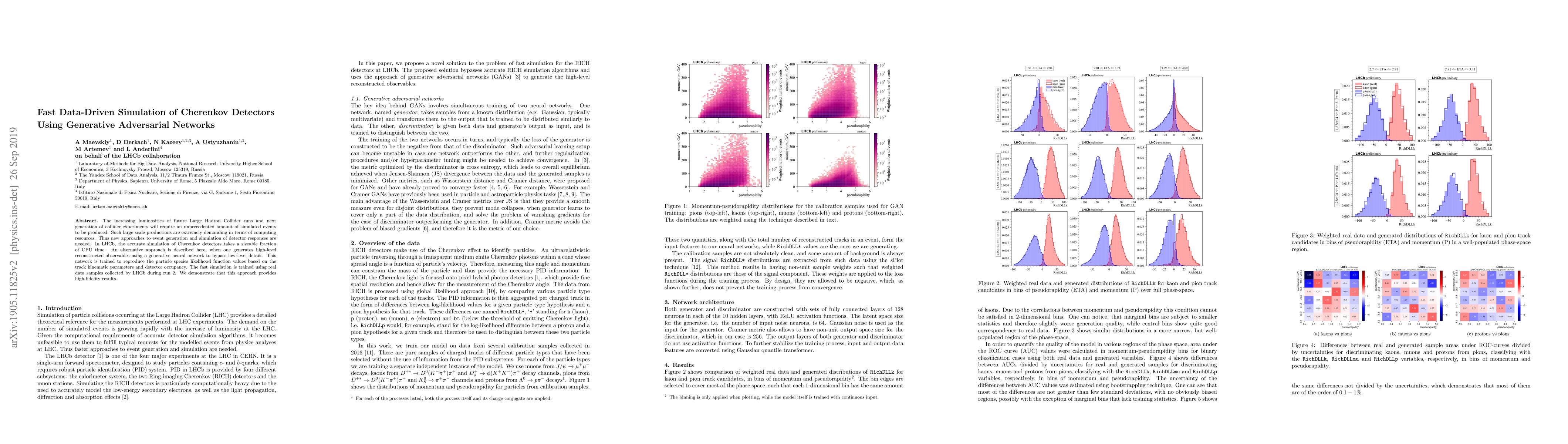 The increasing luminosities of future Large Hadron Collider runs and next generation of collider experiments will require an unprecedented amount of simulated events to be produced. Such large scale productions are extremely demanding in terms of computing resources. Thus new approaches to event generation and simulation of detector responses are needed. In LHCb, the accurate simulation of Cherenkov detectors takes a sizeable fraction of CPU time. An alternative approach is described here, when one generates high-level reconstructed observables using a generative neural network to bypass low level details. This network is trained to reproduce the particle species likelihood function values based on the track kinematic parameters and detector occupancy. The fast simulation is trained using real data samples collected by LHCb during run 2. We demonstrate that this approach provides high-fidelity results.