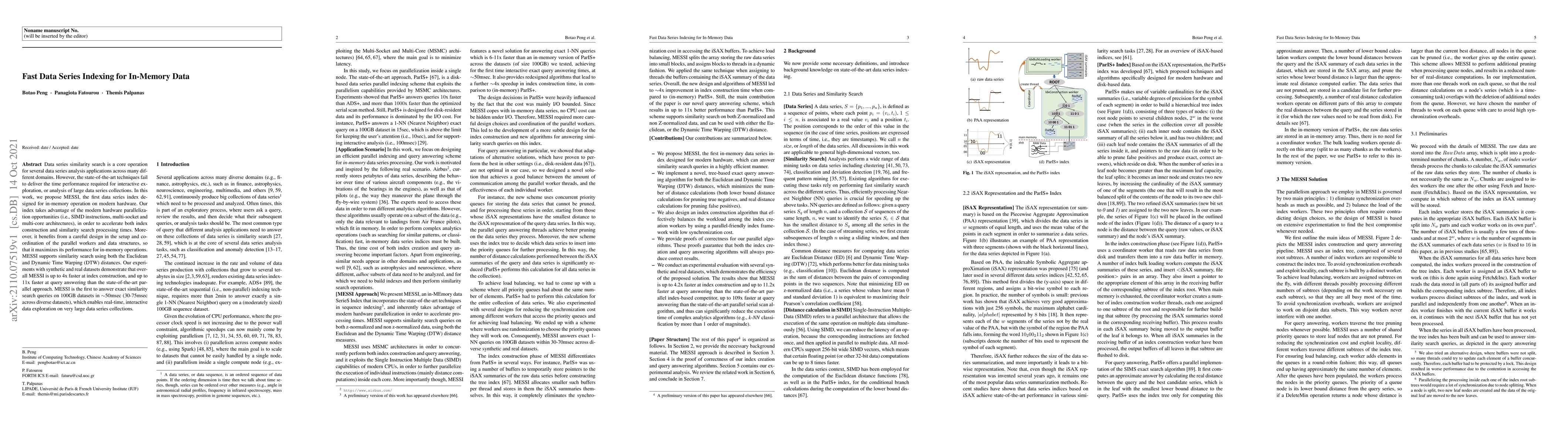 MESSI is a novel in-memory data series index designed to leverage modern hardware for fast similarity search, achieving up to 4x faster index construction and 11x faster query answering compared to existing parallel approaches, enabling real-time exploration of large datasets.