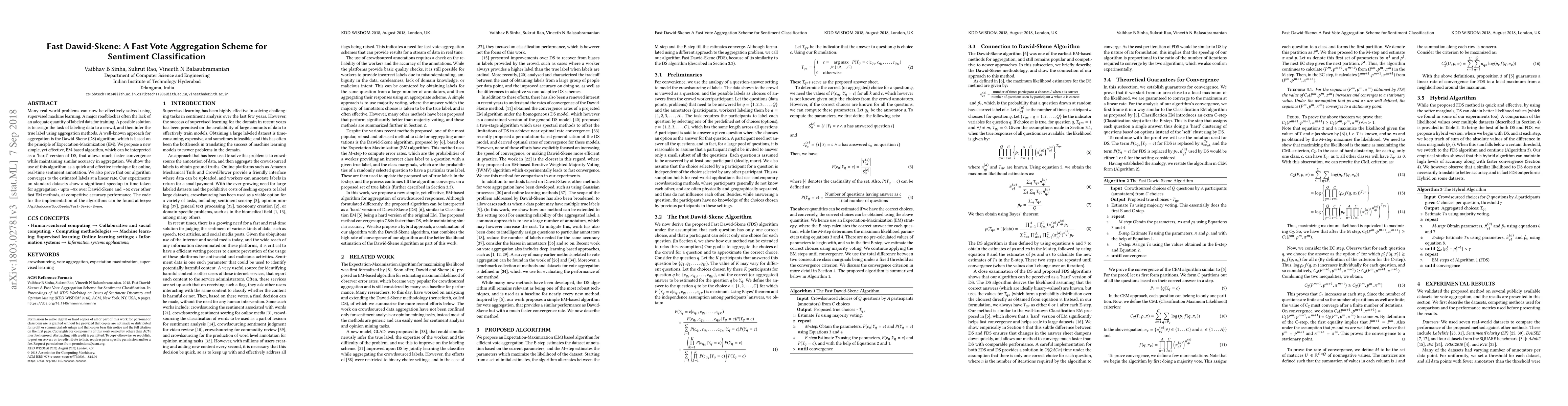 Many real world problems can now be effectively solved using supervised machine learning. A major roadblock is often the lack of an adequate quantity of labeled data for training. A possible solution is to assign the task of labeling data to a crowd, and then infer the true label using aggregation methods. A well-known approach for aggregation is the Dawid-Skene (DS) algorithm, which is based on the principle of Expectation-Maximization (EM). We propose a new simple, yet effective, EM-based algorithm, which can be interpreted as a `hard' version of DS, that allows much faster convergence while maintaining similar accuracy in aggregation. We show the use of this algorithm as a quick and effective technique for online, real-time sentiment annotation. We also prove that our algorithm converges to the estimated labels at a linear rate. Our experiments on standard datasets show a significant speedup in time taken for aggregation - upto $\sim$8x over Dawid-Skene and $\sim$6x over other fast EM methods, at competitive accuracy performance. The code for the implementation of the algorithms can be found at https://github.com/GoodDeeds/Fast-Dawid-Skene