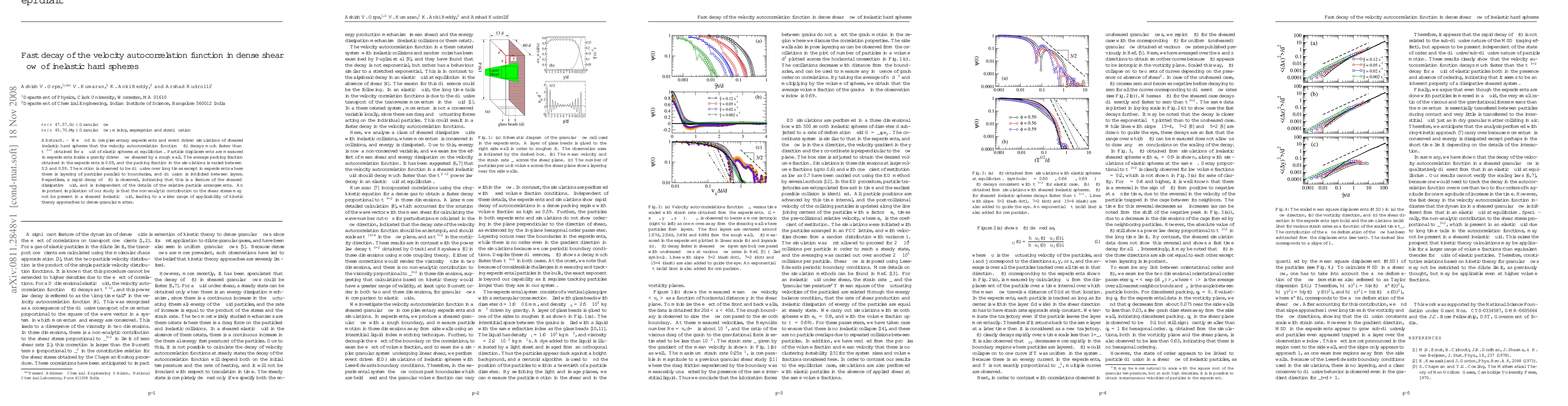 This study reveals that in dense shear flows of inelastic hard spheres, the velocity autocorrelation function decays faster than in elastic fluids, indicating a rapid loss of memory in particle velocities. This rapid decay is observed across experiments and simulations, suggesting a unique feature of sheared dissipative fluids.