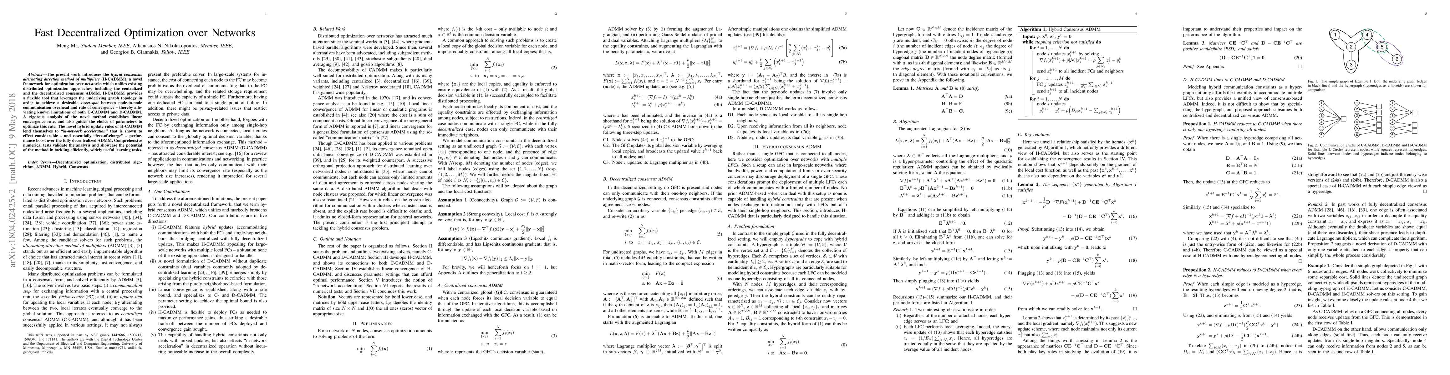 The present work introduces the hybrid consensus alternating direction method of multipliers (H-CADMM), a novel framework for optimization over networks which unifies existing distributed optimization approaches, including the centralized and the decentralized consensus ADMM. H-CADMM provides a flexible tool that leverages the underlying graph topology in order to achieve a desirable sweet-spot between node-to-node communication overhead and rate of convergence -- thereby alleviating known limitations of both C-CADMM and D-CADMM. A rigorous analysis of the novel method establishes linear convergence rate, and also guides the choice of parameters to optimize this rate. The novel hybrid update rules of H-CADMM lend themselves to "in-network acceleration" that is shown to effect considerable -- and essentially "free-of-charge" -- performance boost over the fully decentralized ADMM. Comprehensive numerical tests validate the analysis and showcase the potential of the method in tackling efficiently, widely useful learning tasks.