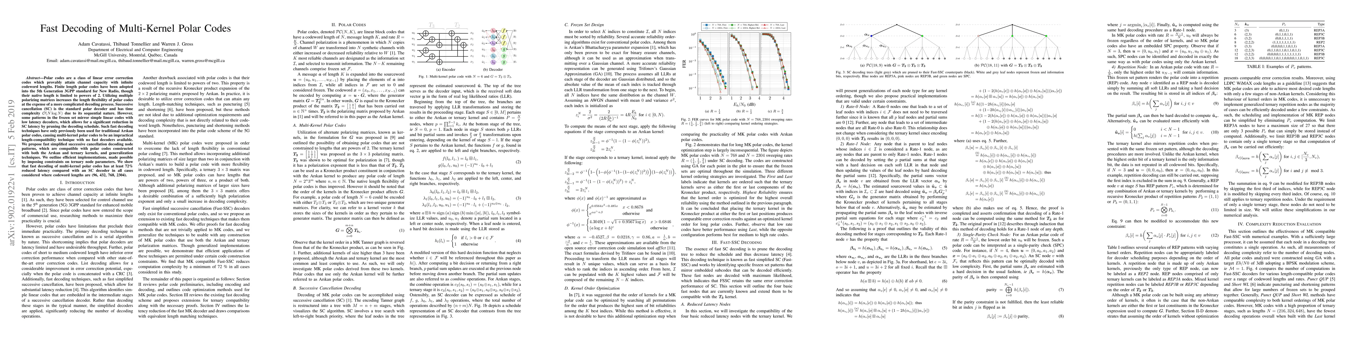 This paper proposes fast decoding techniques for multi-kernel polar codes, which significantly reduce latency by pruning the standard successive cancellation decoder. The proposed method achieves at least 72% reduction in decoding time compared to traditional methods for various codeword lengths.